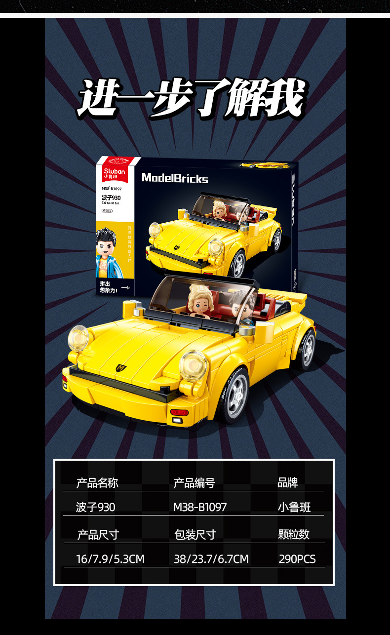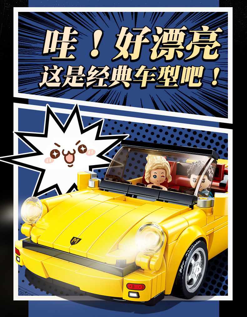 Xiaoluban 조립 빌딩 블록 배달 1097 포르쉐 930 9 그리드 자동차 모델 장식 소년 장난감스토어 가기
