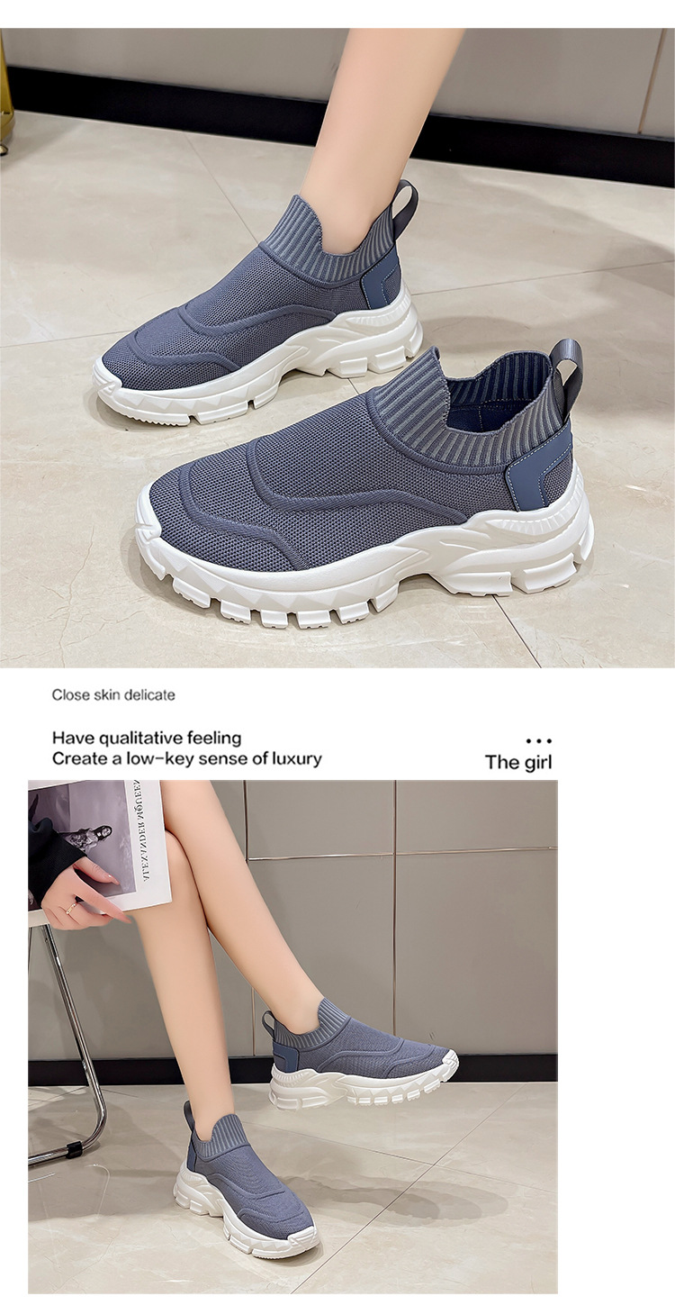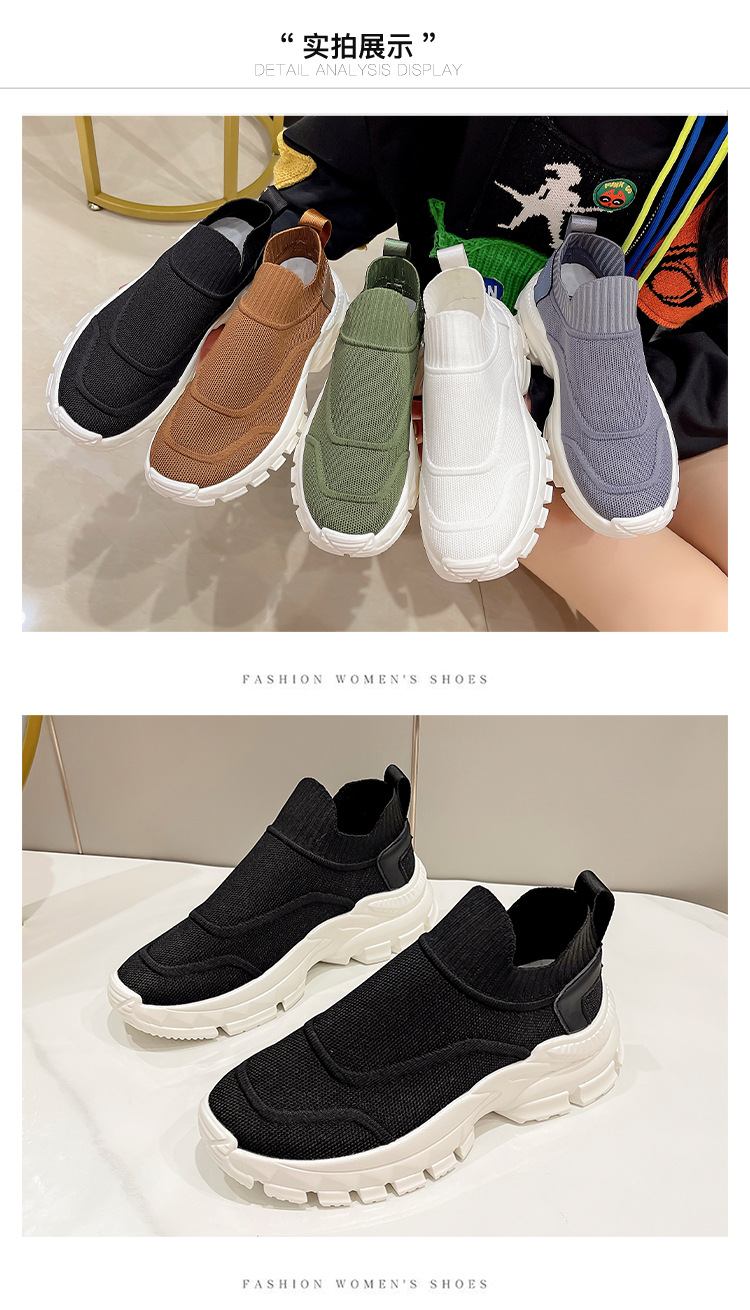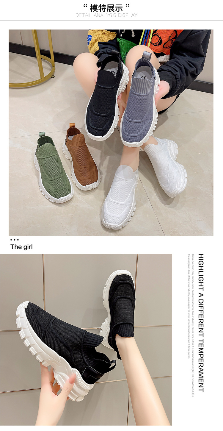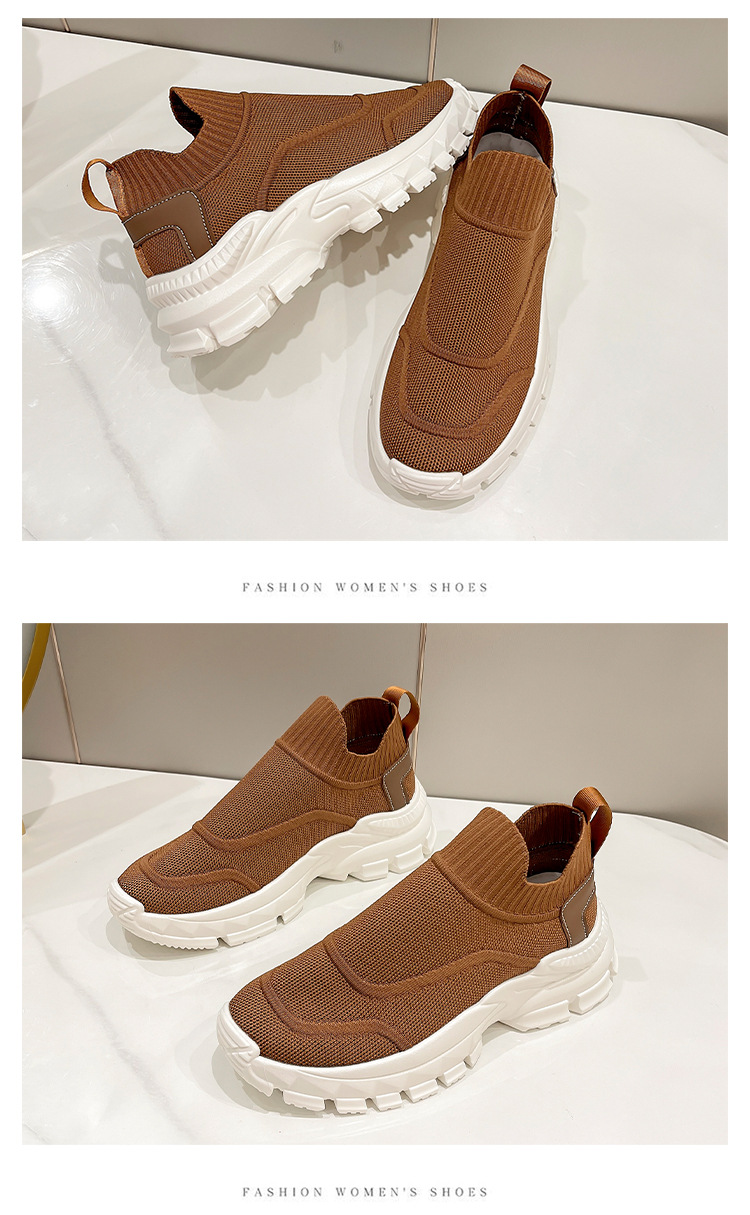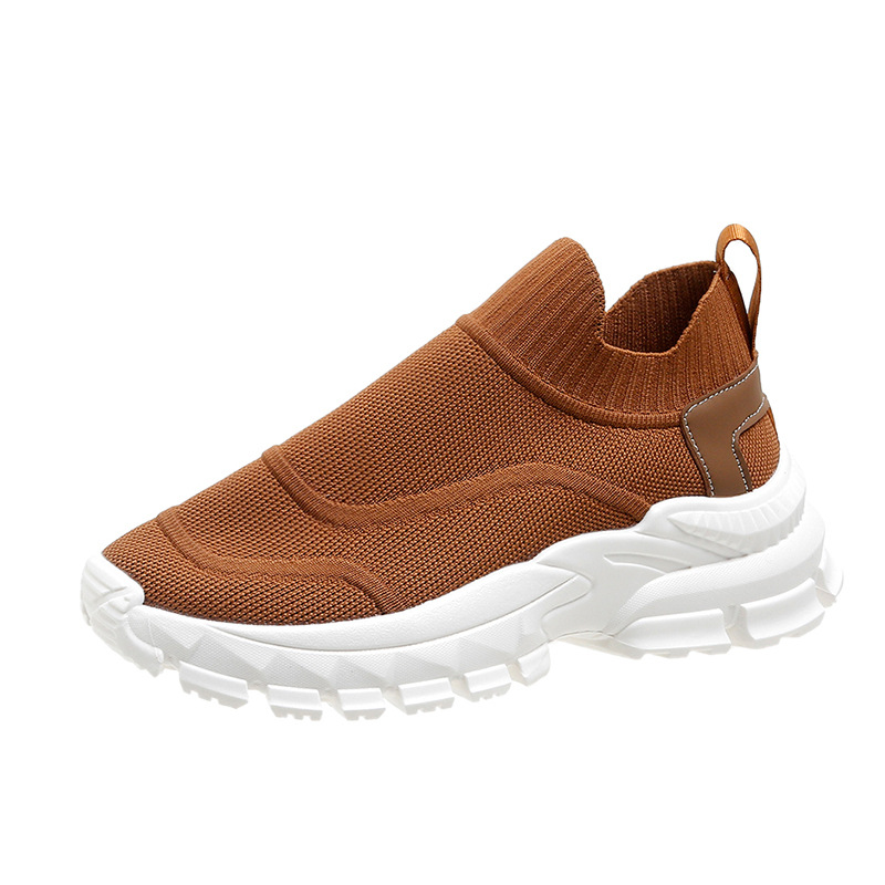 2025 봄과 여름 새로운 통기성 플라이 니트 아빠 신발 게으른 양말 신발 여성 슬립 온 캐주얼 스포츠 운동화