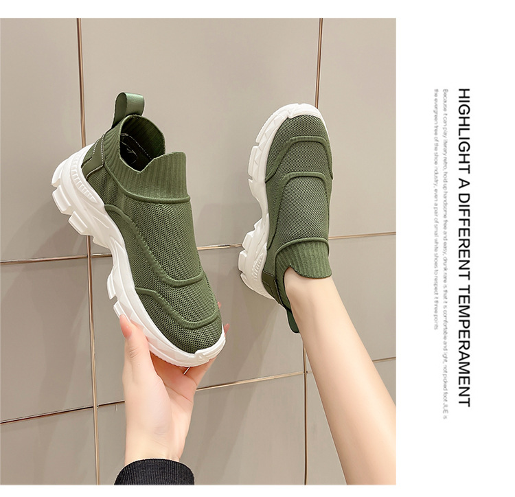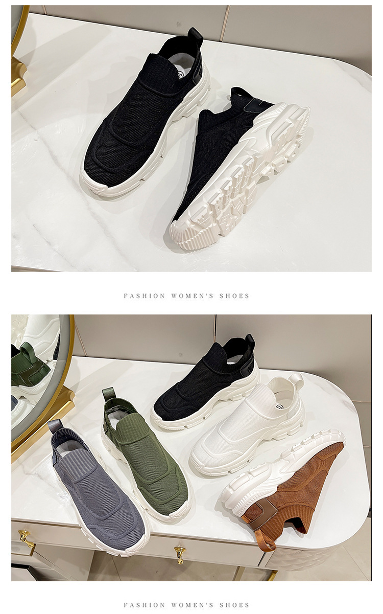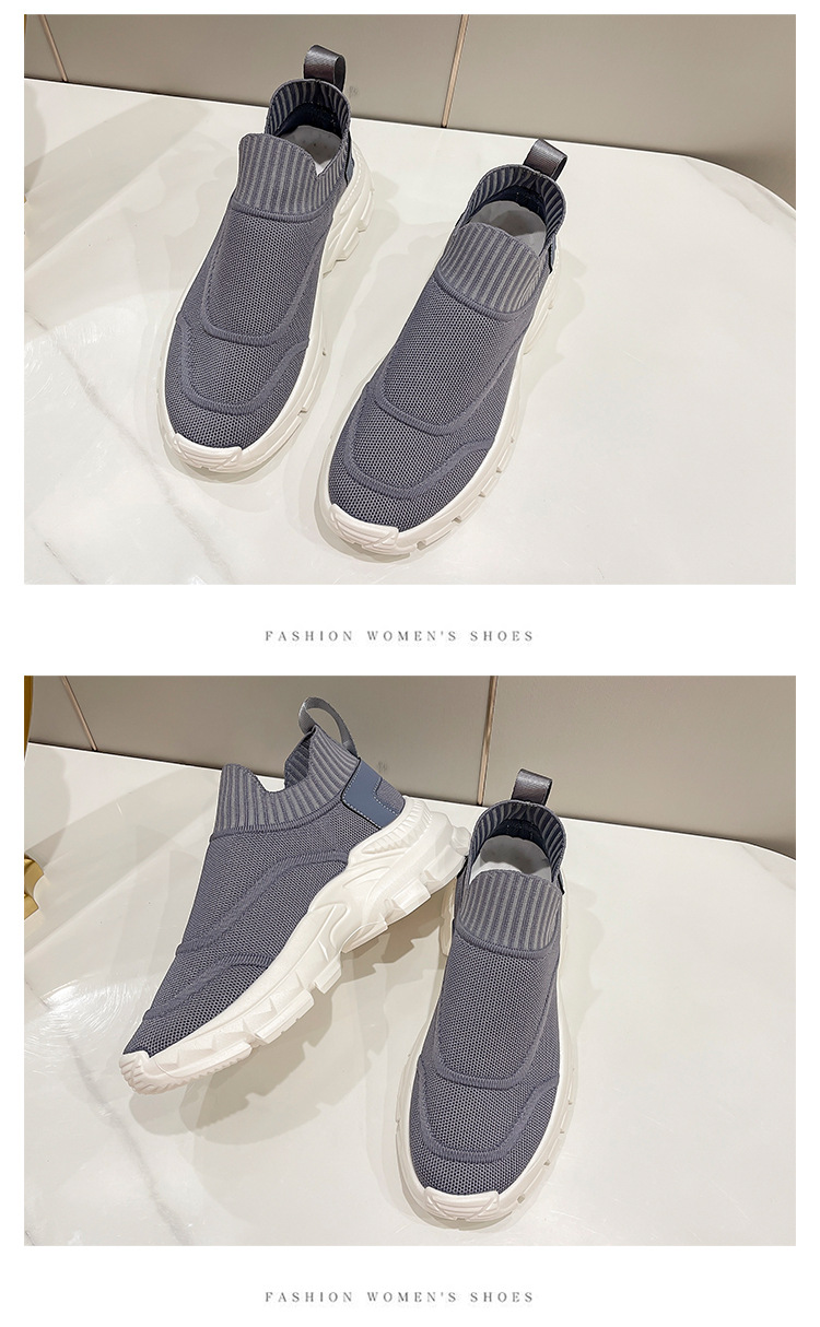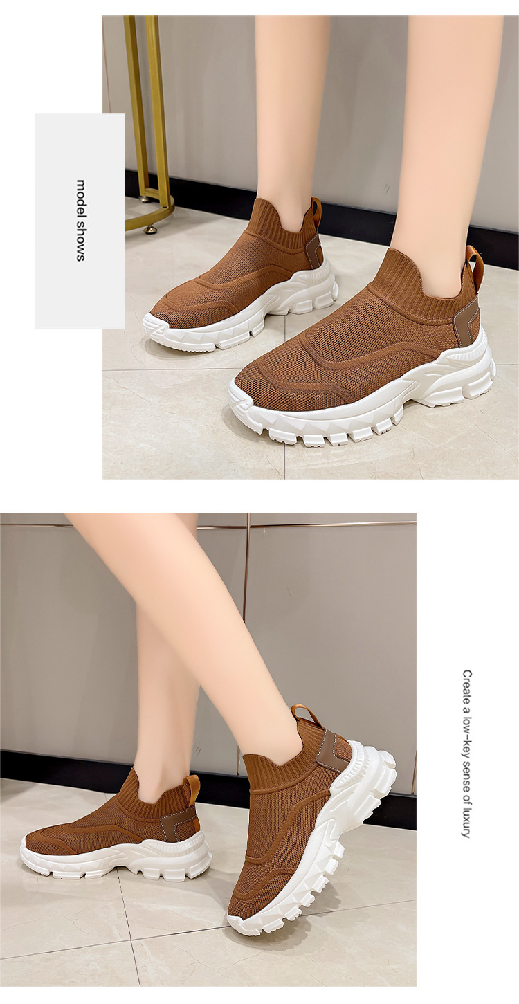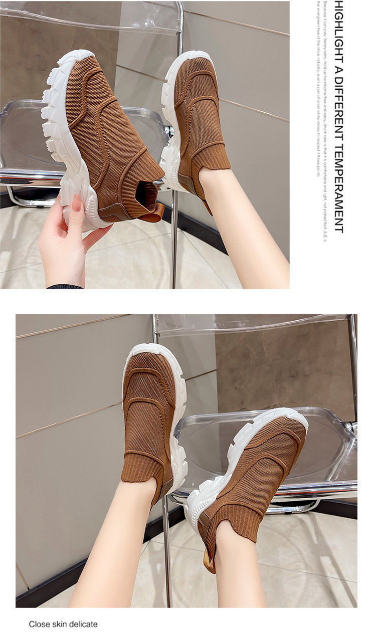 2025 봄과 여름 새로운 통기성 플라이 니트 아빠 신발 게으른 양말 신발 여성 슬립 온 캐주얼 스포츠 운동화