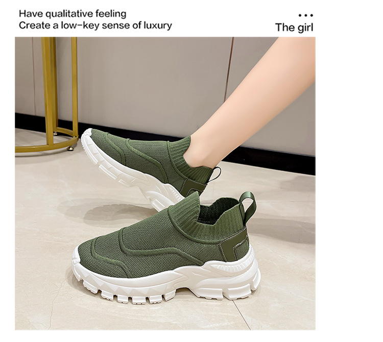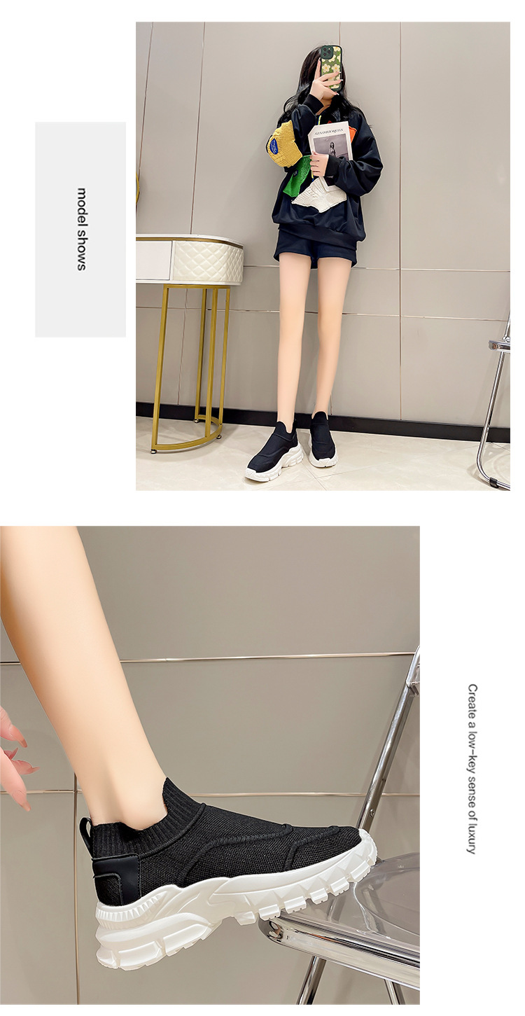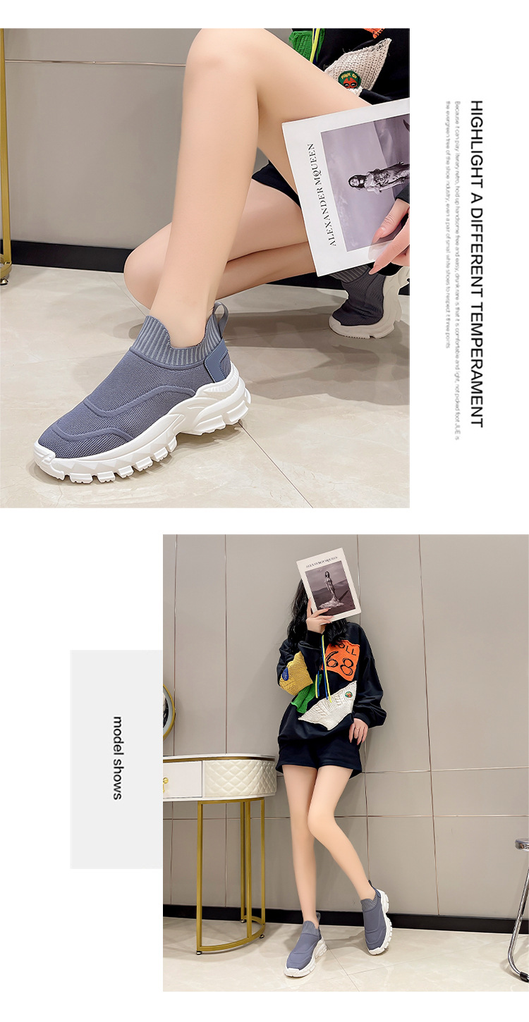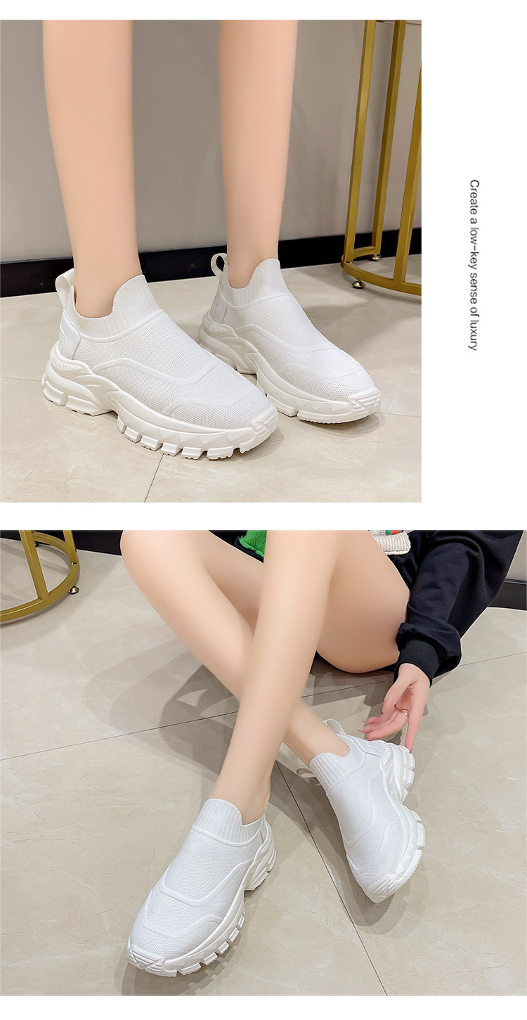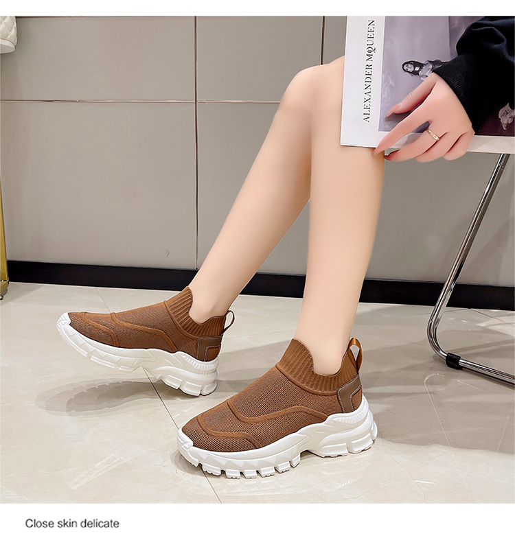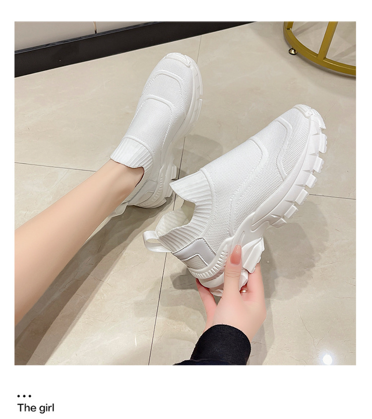 2025 봄과 여름 새로운 통기성 플라이 니트 아빠 신발 게으른 양말 신발 여성 슬립 온 캐주얼 스포츠 운동화