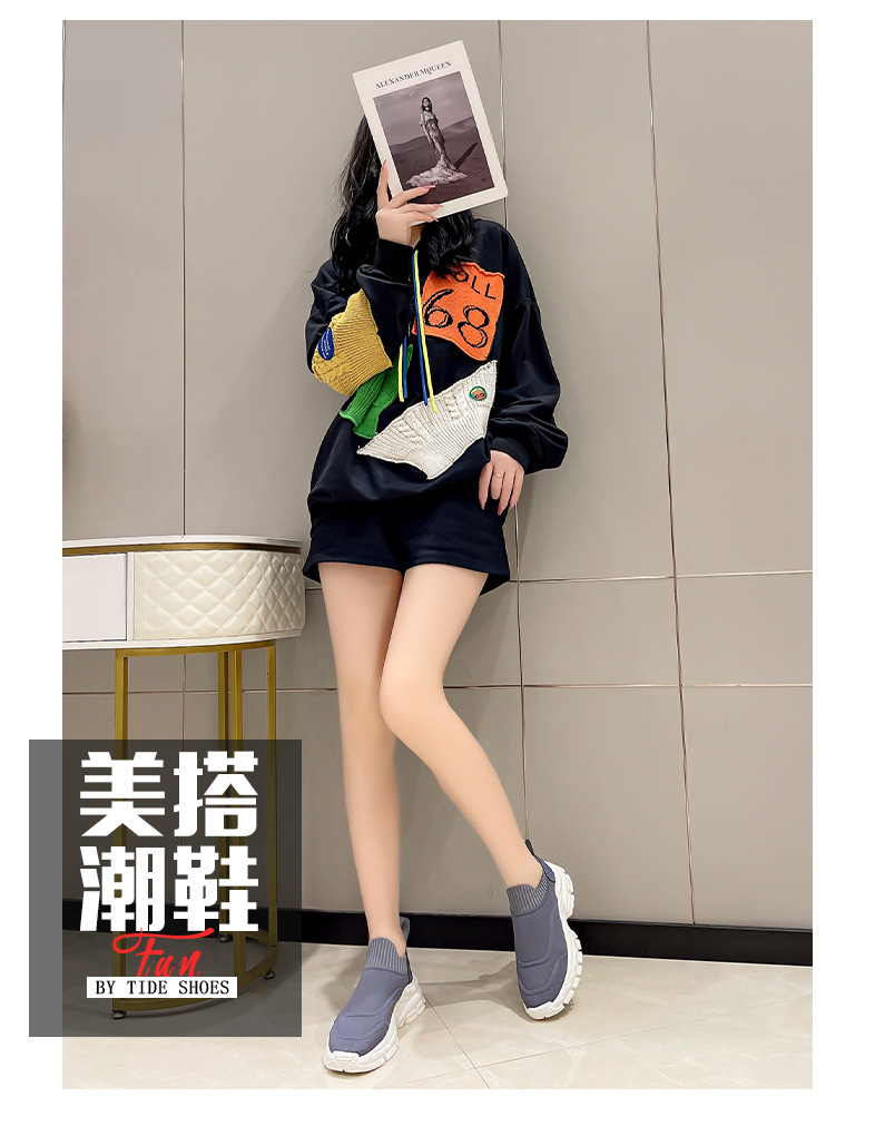 2025 봄과 여름 새로운 통기성 플라이 니트 아빠 신발 게으른 양말 신발 여성 슬립 온 캐주얼 스포츠 운동화스토어 가기