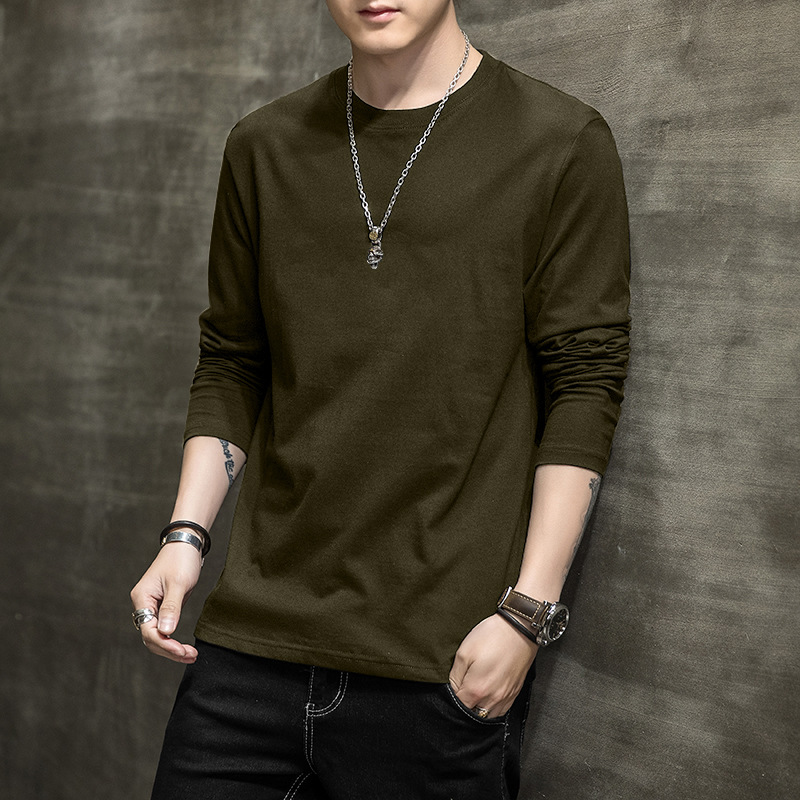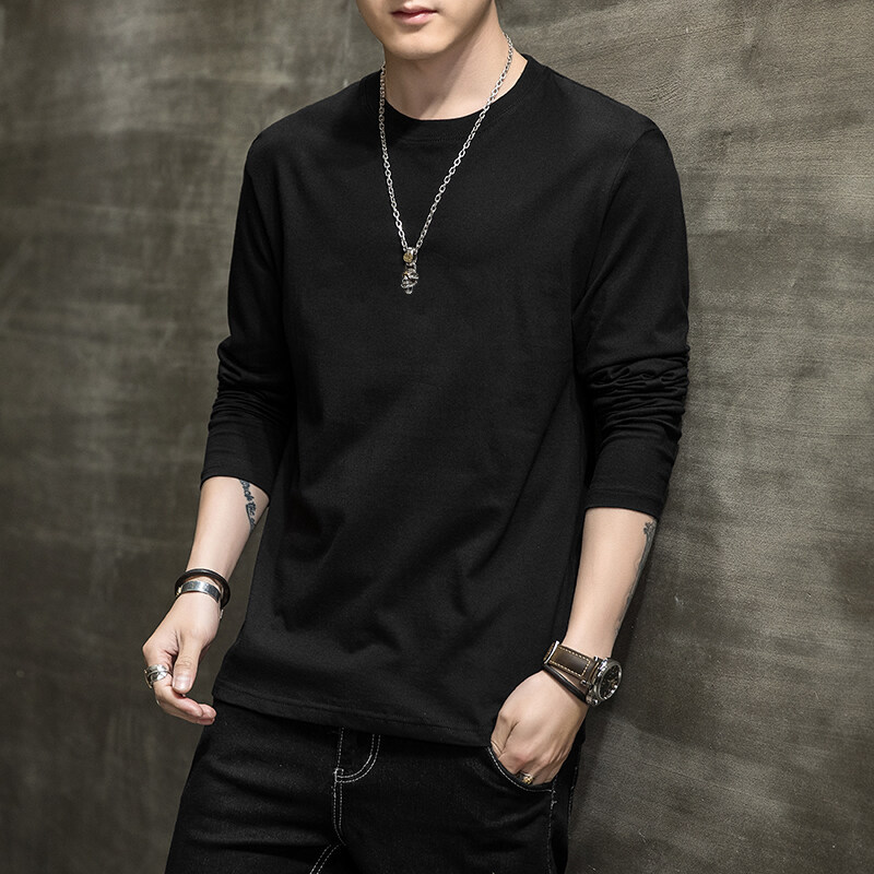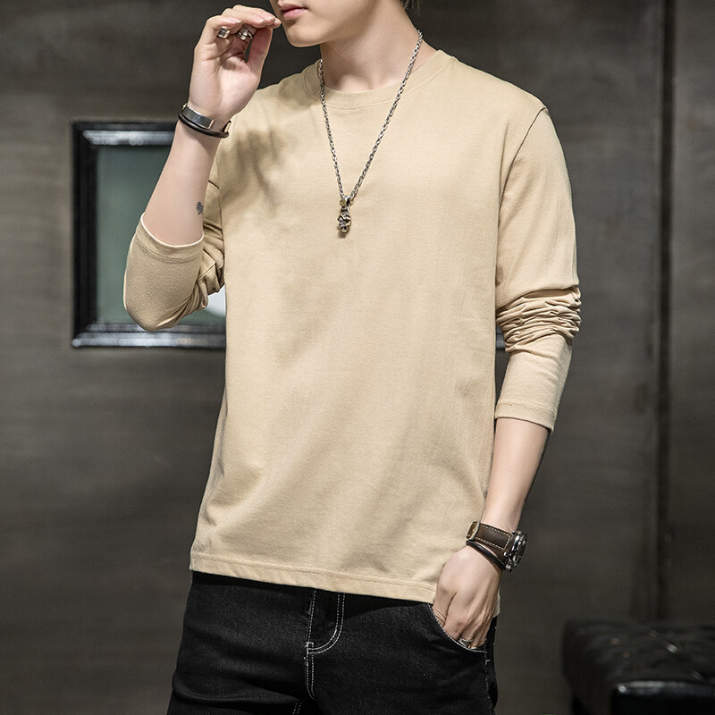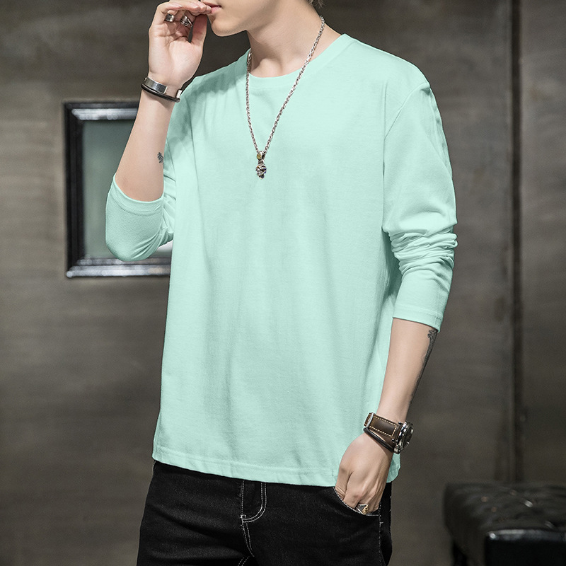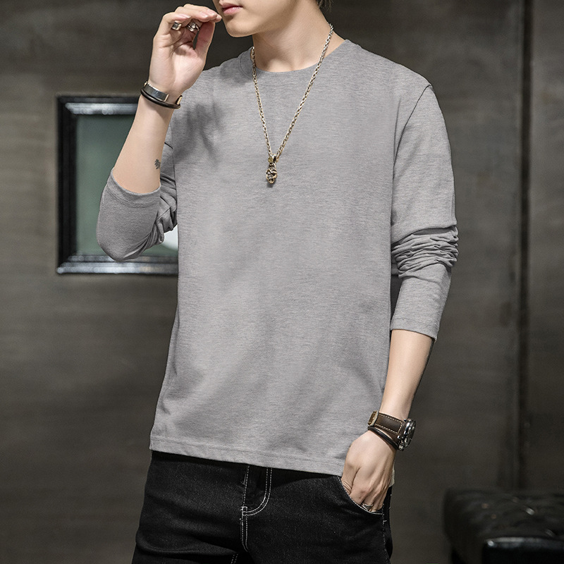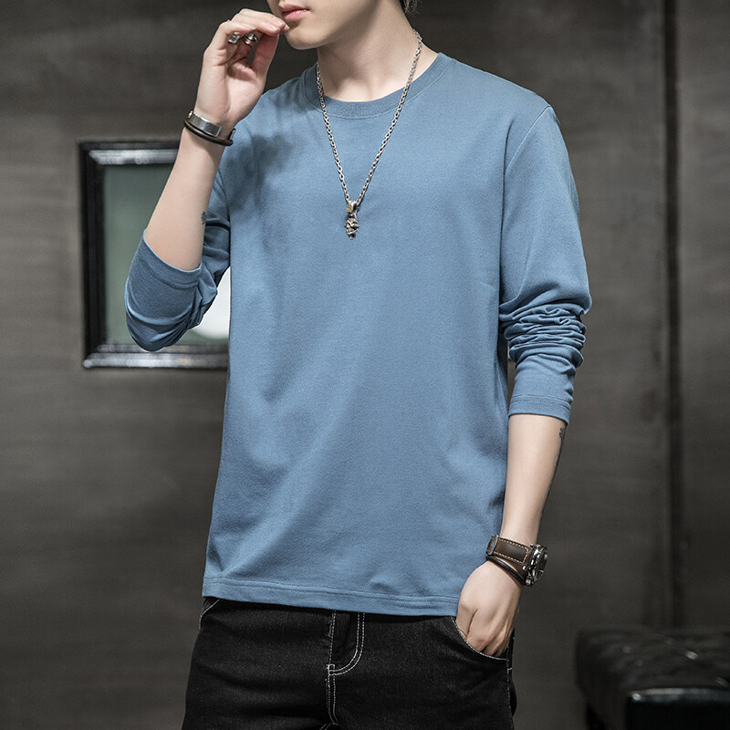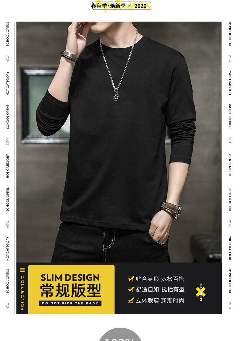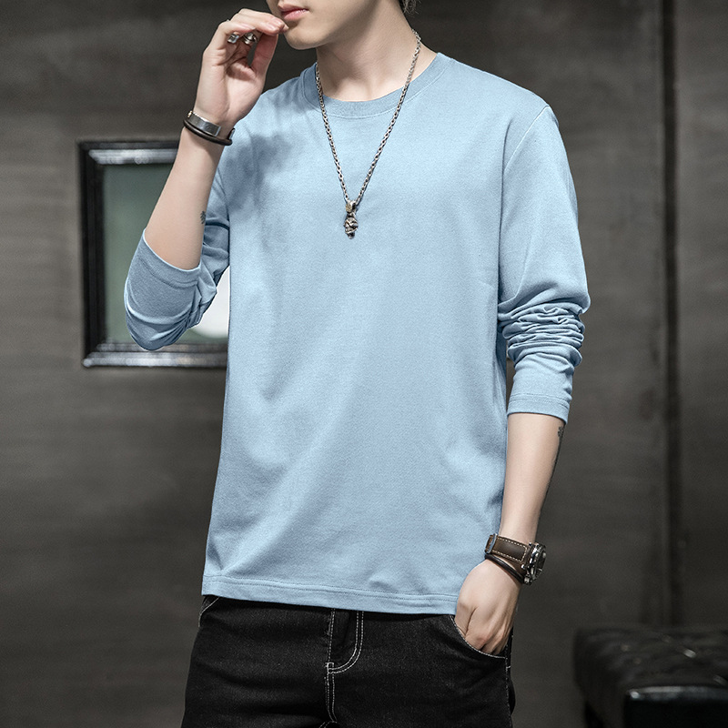 2025년 신상 봄 라운드넥 긴팔 티셔츠 남성 슬림핏 상의 단색 기본 셔츠 캐주얼 다용도 풀오버 남성용스토어 가기