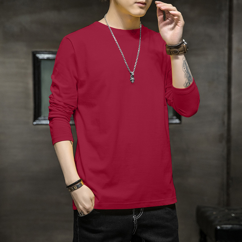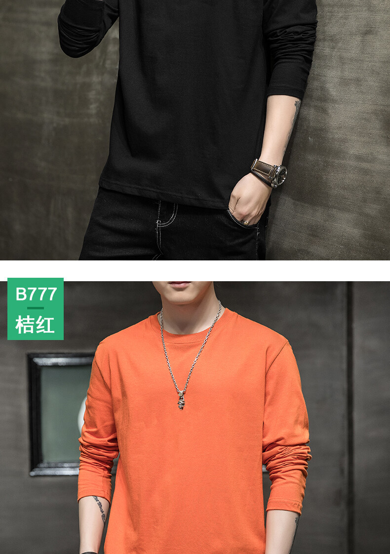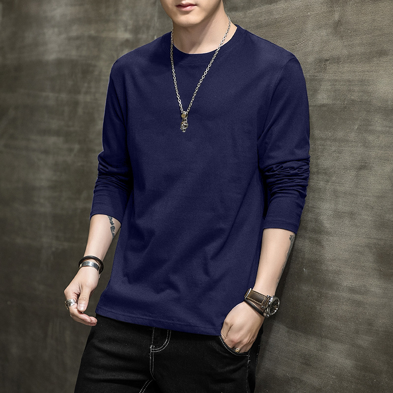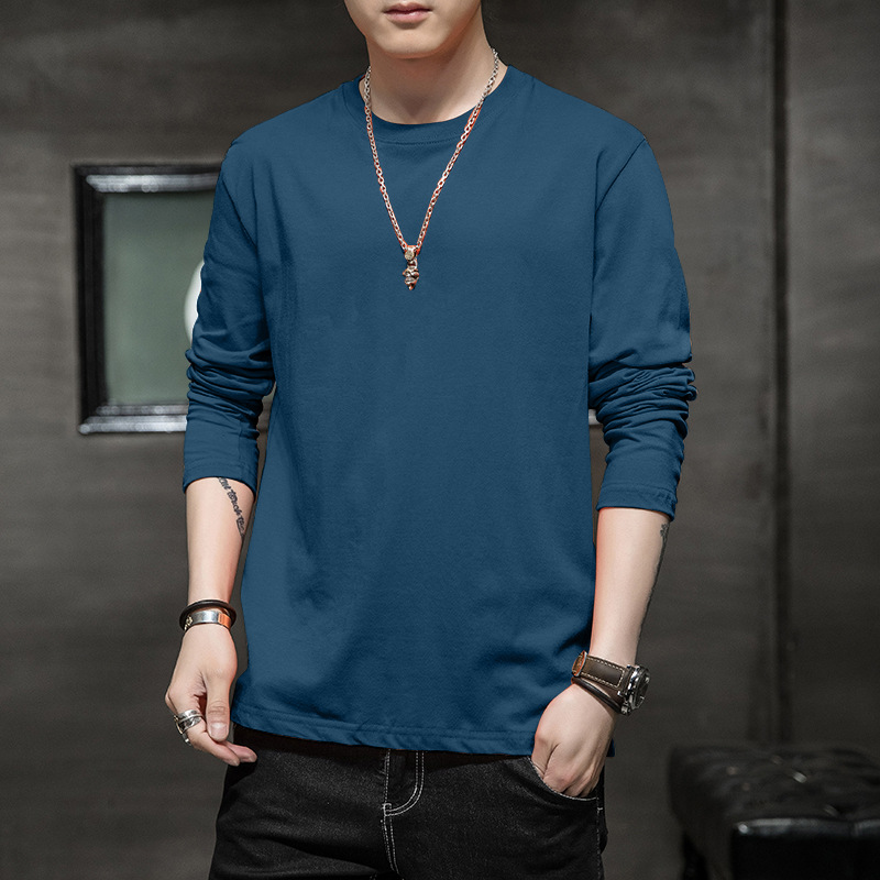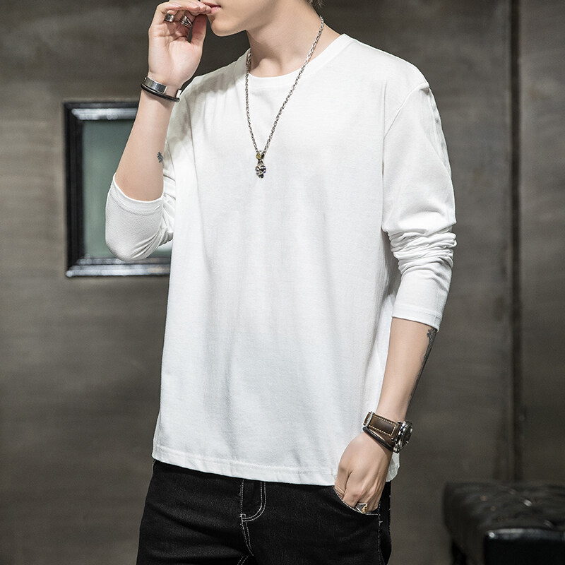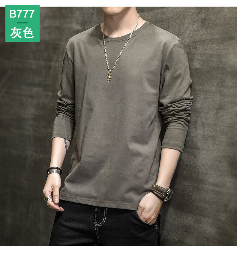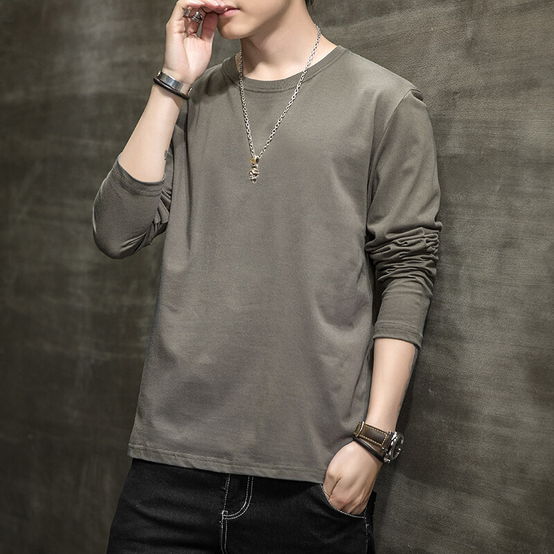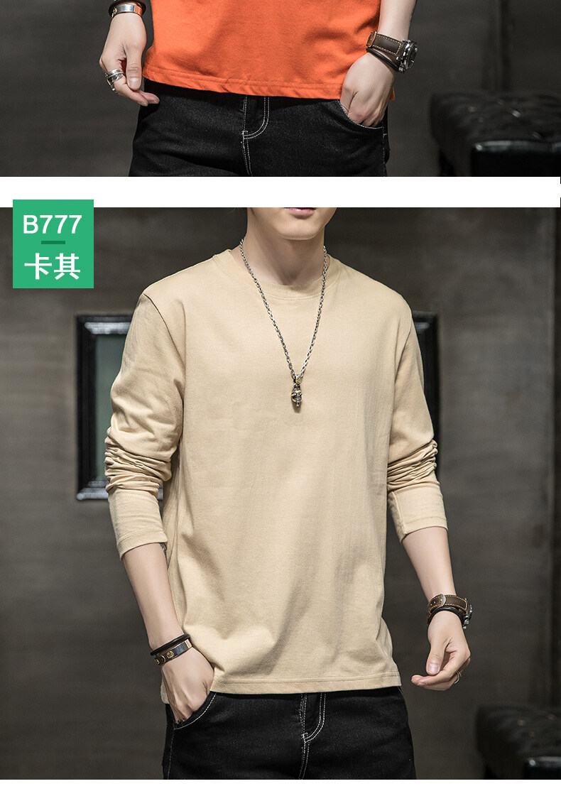 2025년 신상 봄 라운드넥 긴팔 티셔츠 남성 슬림핏 상의 단색 기본 셔츠 캐주얼 다용도 풀오버 남성용스토어 가기