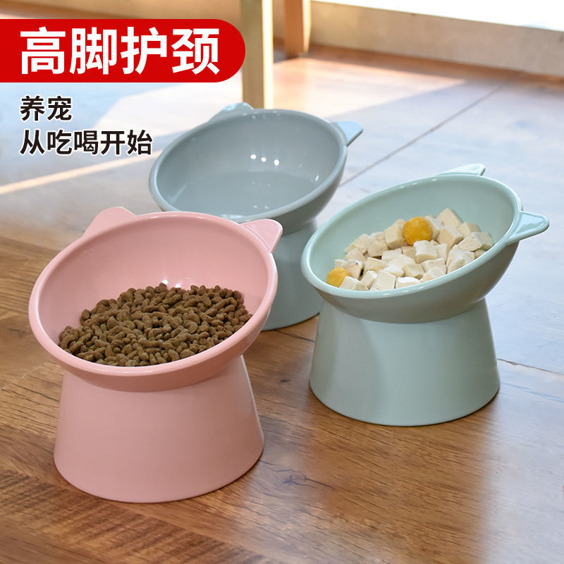 고양이 밥그릇 높은 발 비스듬한 입 15 목 보호 고양이 밥그릇 개 밥 분지 노크 방지 고양이 밥그릇 마시는 그릇 더블 이어 그릇스토어 가기