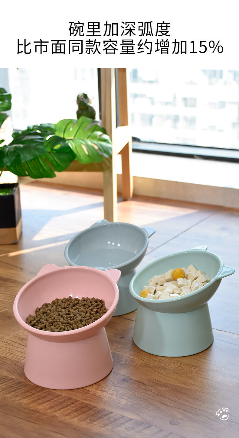 고양이 밥그릇 높은 발 비스듬한 입 15 목 보호 고양이 밥그릇 개 밥 분지 노크 방지 고양이 밥그릇 마시는 그릇 더블 이어 그릇