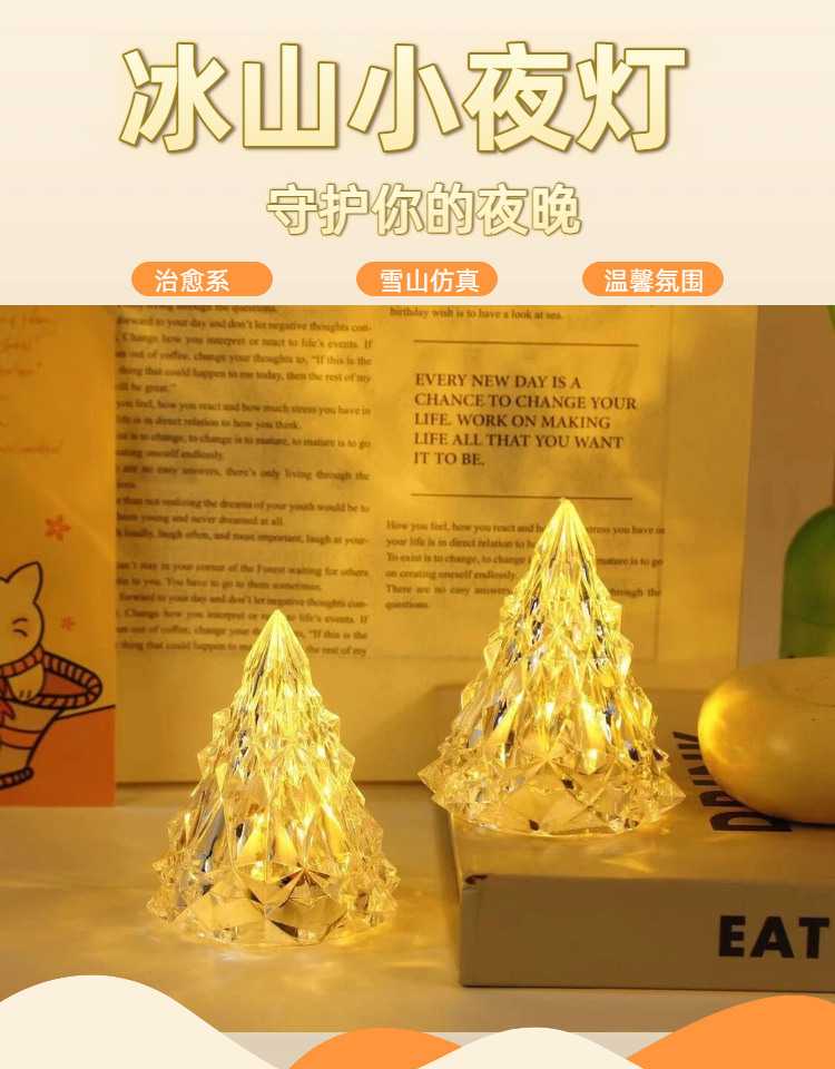 스타일의 인터넷 유명인 귀여운 빙산 크리스탈 야간 조명 분위기 조명 글로우 룸 장식 기숙사 장식품 생일 행사