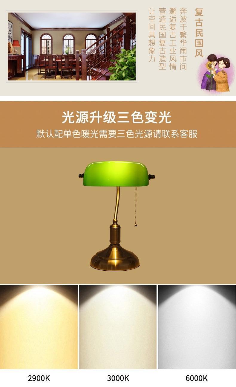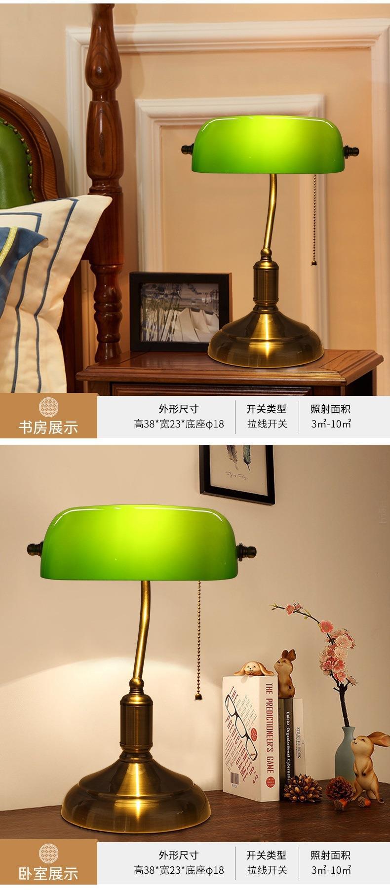 유럽식 은행 테이블 램프, 중화민국 시대의 옛 상하이 녹색 유리 테이블 램프, 복고풍의蒋介石 서재 사무실 조명 도매스토어 가기