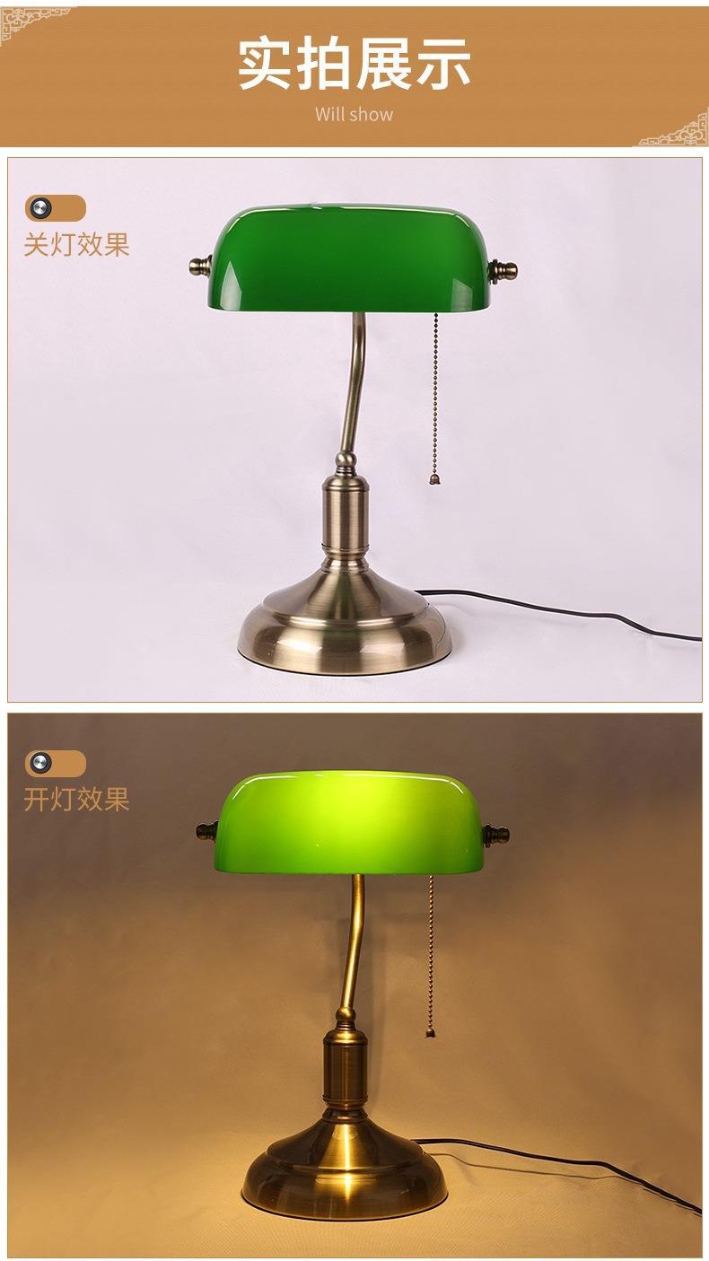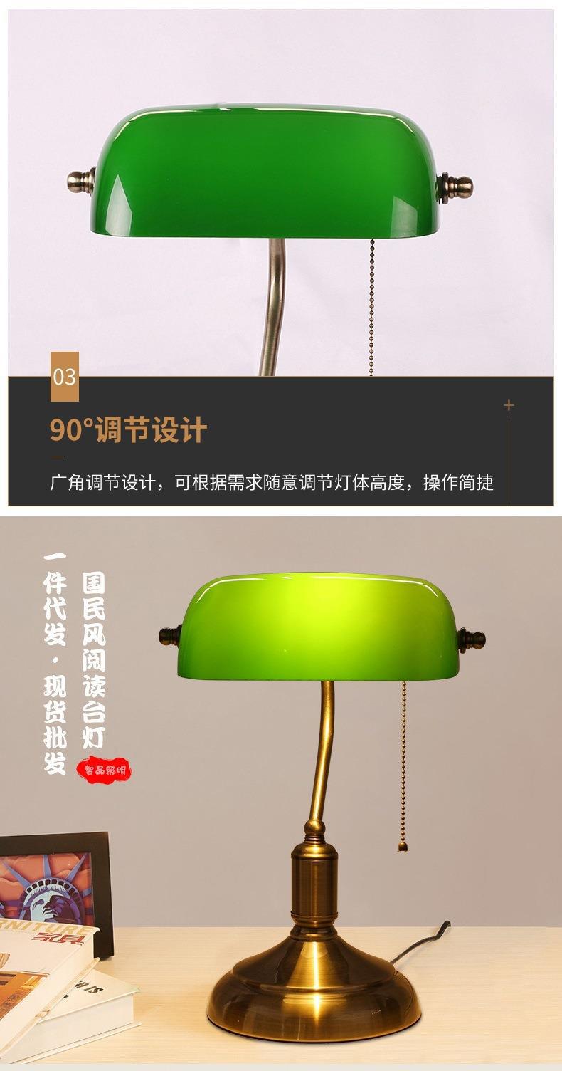 유럽식 은행 테이블 램프, 중화민국 시대의 옛 상하이 녹색 유리 테이블 램프, 복고풍의蒋介石 서재 사무실 조명 도매