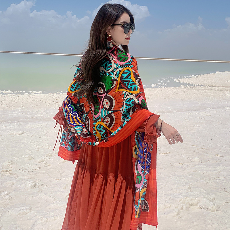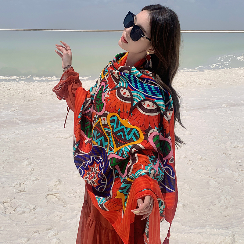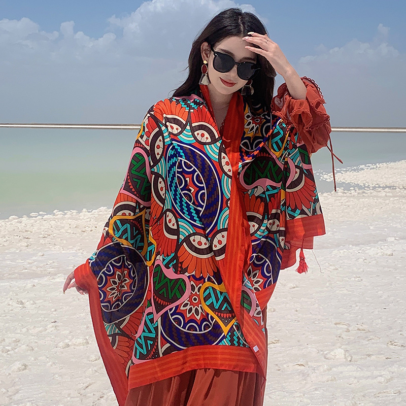 캐주얼 편안한 여름 야외 사진 케이프 에스닉 통기성 스카프 큰 망토 해변 휴가 여행 숄