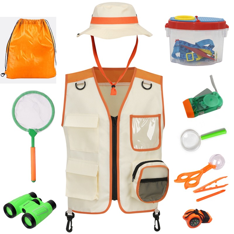 어린이 야외 모험 조끼 조끼 세트 캠핑 도구 생물 학자 역할 놀이 옷 곤충 덫 옷