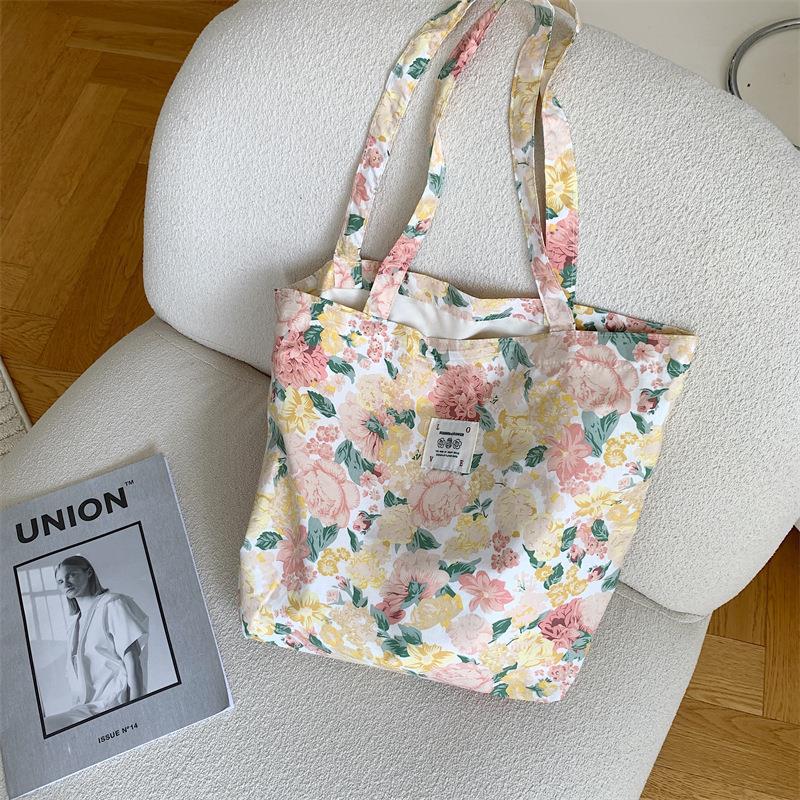 26101 봄과 여름 신꽃 면 숄더백 대용량 토트백 여성 휴대 학생 쇼핑백 도매