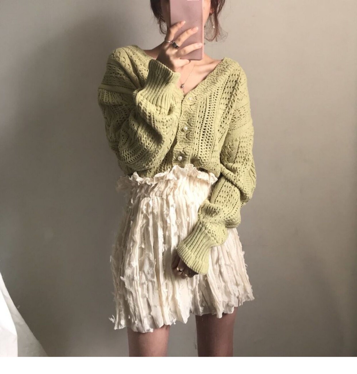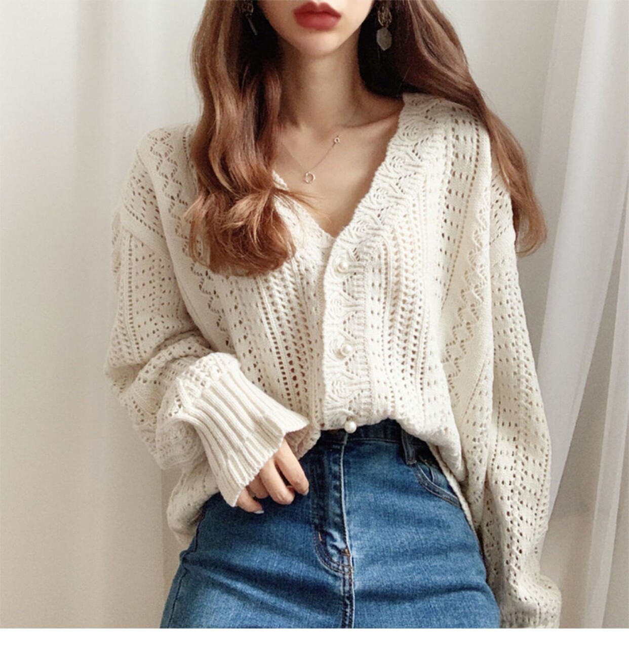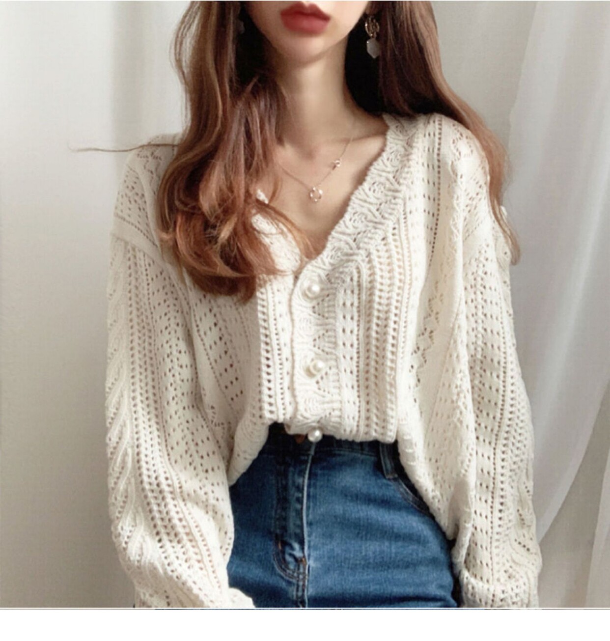 가을과 겨울 2023 새로운 화이트 카디건 여성용 느슨한 중공 젠틀 스타일 니트웨어 탑 얇은 코트 겨울