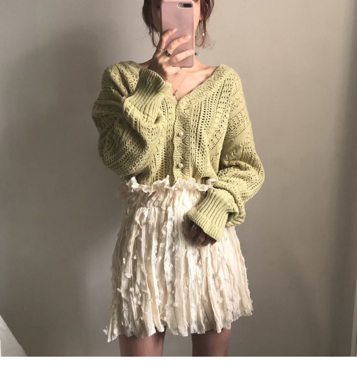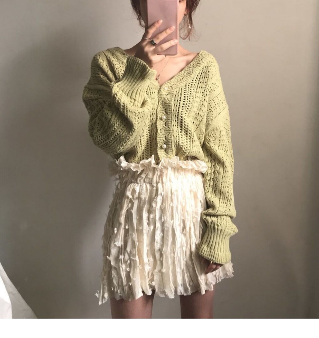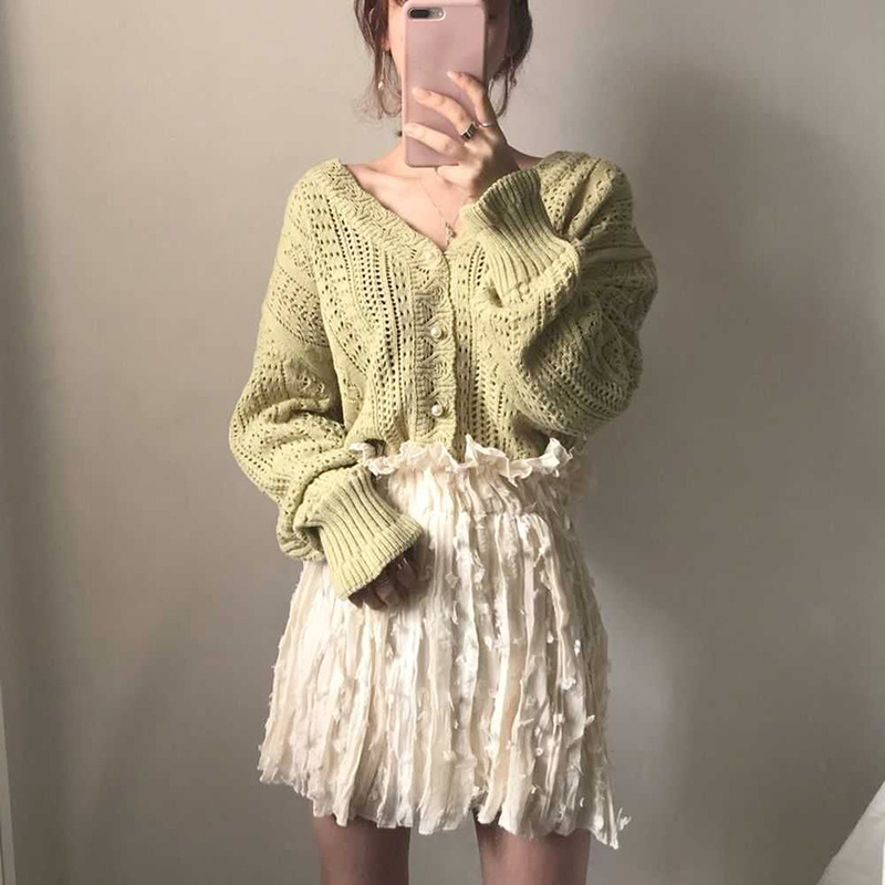 가을과 겨울 2023 새로운 화이트 카디건 여성용 느슨한 중공 젠틀 스타일 니트웨어 탑 얇은 코트 겨울