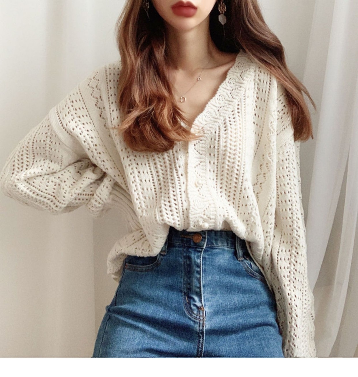 가을과 겨울 2023 새로운 화이트 카디건 여성용 느슨한 중공 젠틀 스타일 니트웨어 탑 얇은 코트 겨울스토어 가기