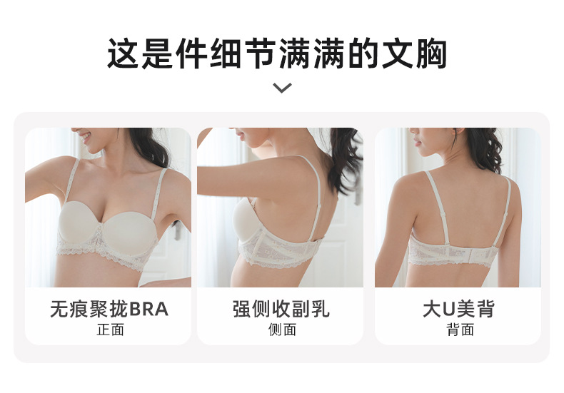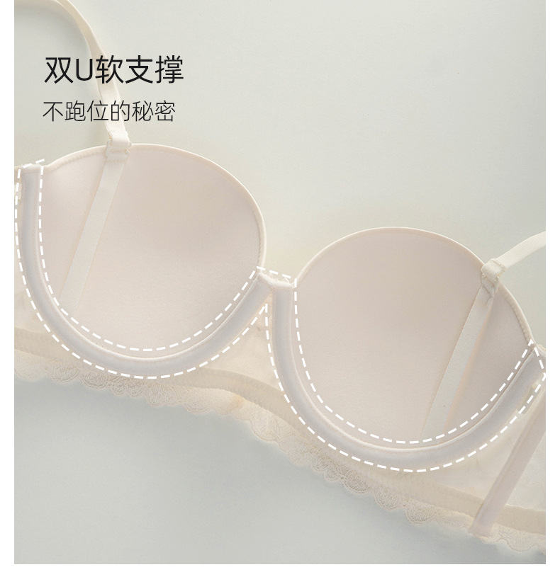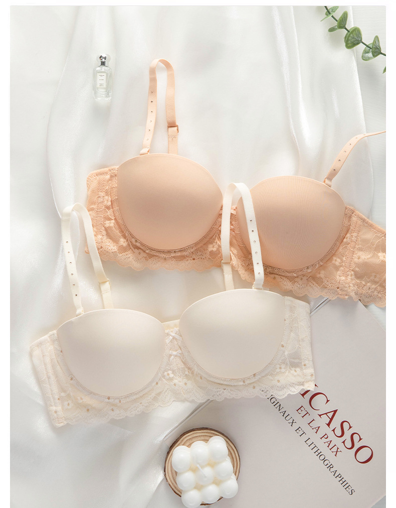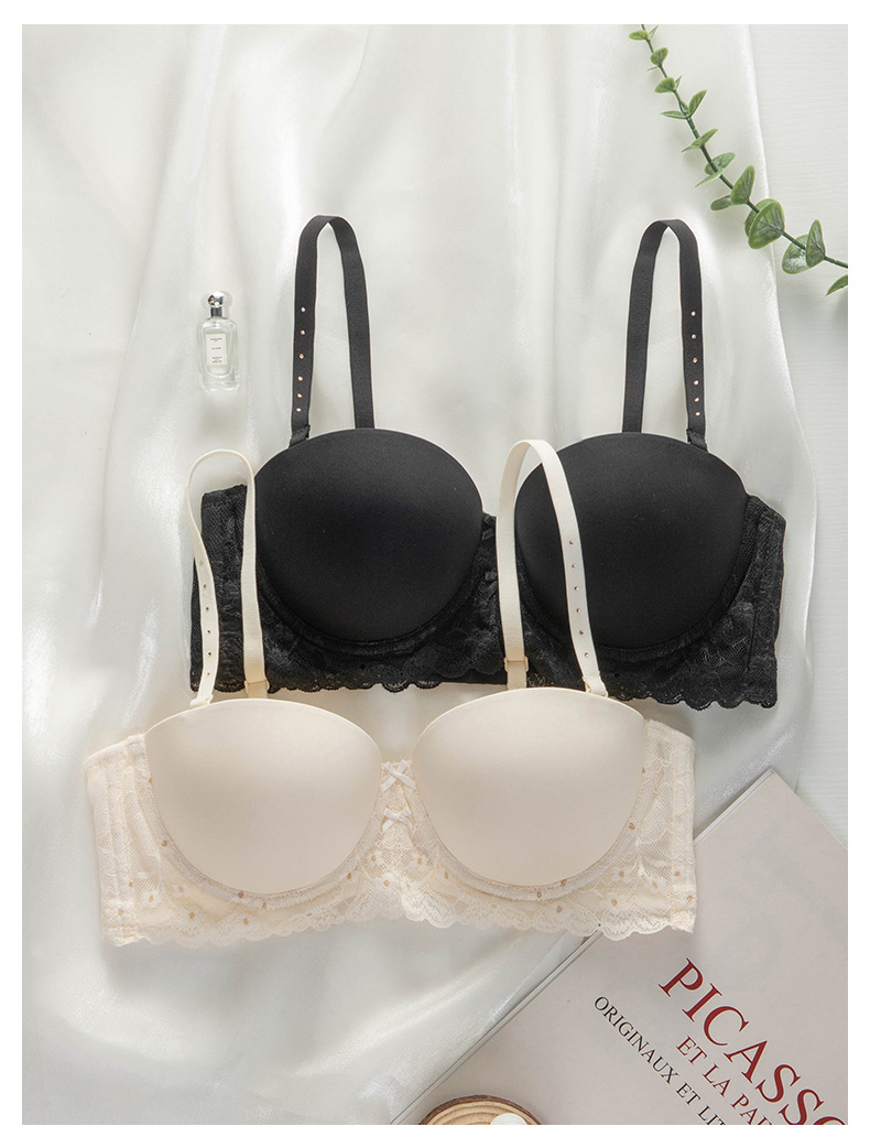 패션 레이스 섹시 하프 컵 속옷 여성의 Traceless Push-up Parammary 분리 가능한 어깨 스트랩 크로스 보더 브라 세트스토어 가기