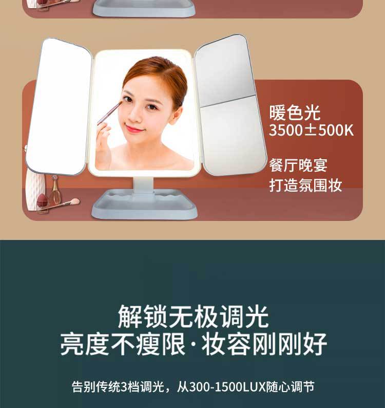 램프 기숙사 쉘 거울 지능형 빛 메이크업 거울 제조 업체 재고 led 메이크업 거울 데스크탑 드레싱 거울