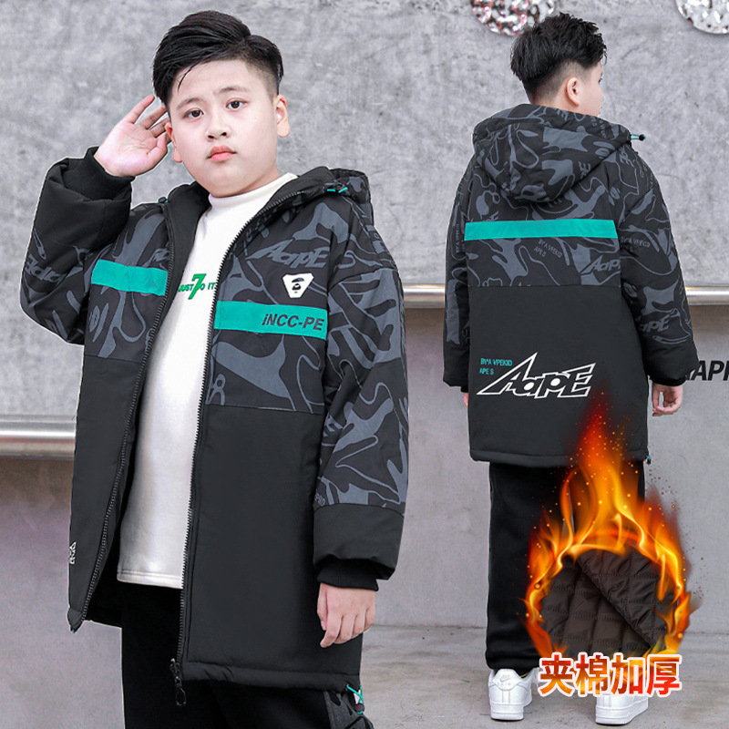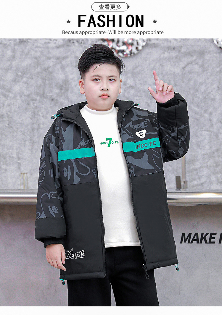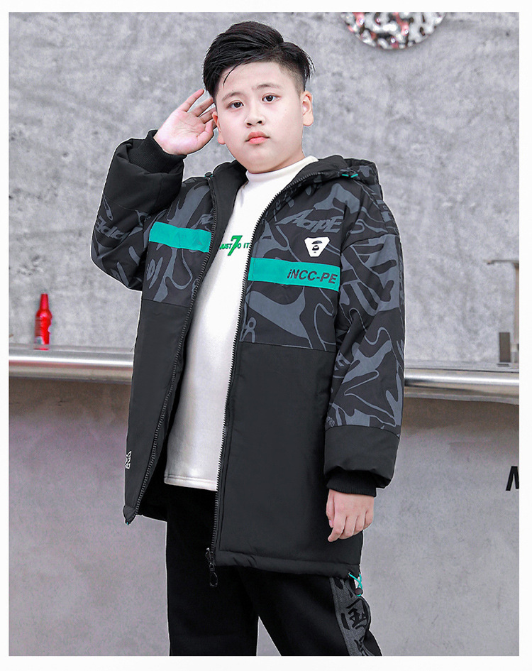 뚱뚱한 소년 면 패딩 두꺼운 재킷 대형 어린이 지방 초대형 윈드 브레이커 가을과 겨울 후드 따뜻한 느슨한 러쉬 옷스토어 가기