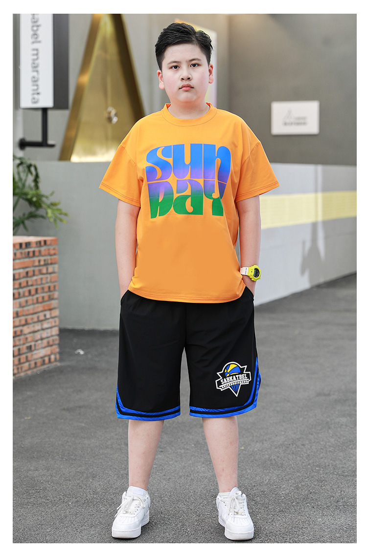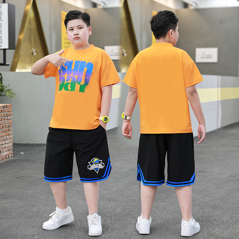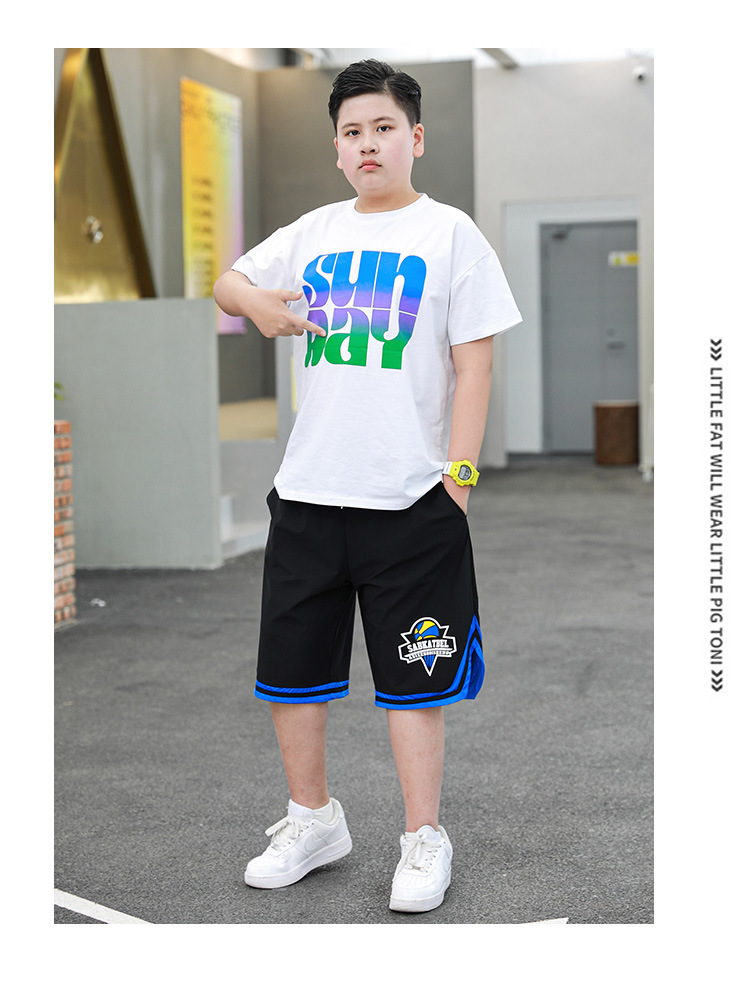 통통한 아동복 남아 반팔 세트 대형 루즈한 여름 의류 플러스 사이즈 얇은 티셔츠 반바지 투피스 패셔너블 세트스토어 가기