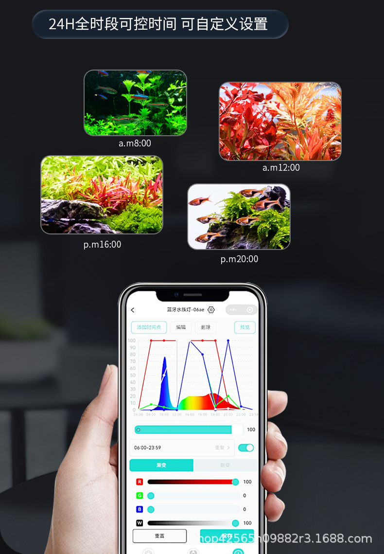공장 직접 어항 조정 가능한 초점 다운 라이트 전체 스펙트럼 브라이트닝 스마트 폰 제어 램프 브래킷 색 온도 물 잔디 램프