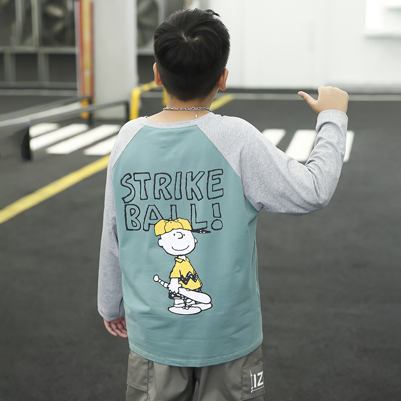 통통한 소년 긴팔 티셔츠 봄과 가을 중대형 소년 얇은 플러스 무게 기본 셔츠 느슨한 유행 플러스 사이즈 탑 9스토어 가기