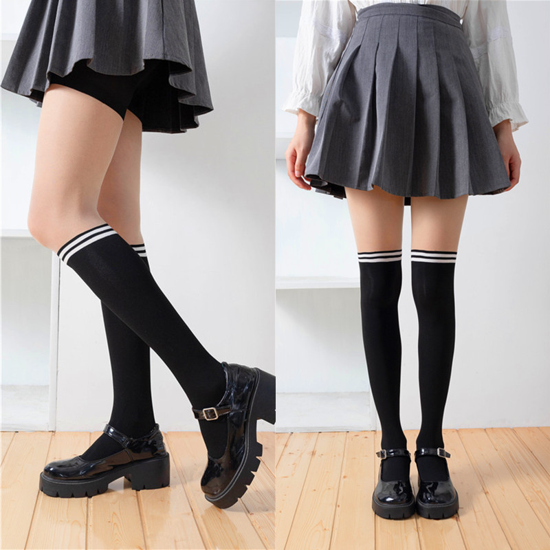 일본 줄무늬 커프스 양말 여자의 봄과 가을 가짜 살 스티칭 실크 스타킹 팬티 스타킹 벨벳 jk 긴 무릎 양말