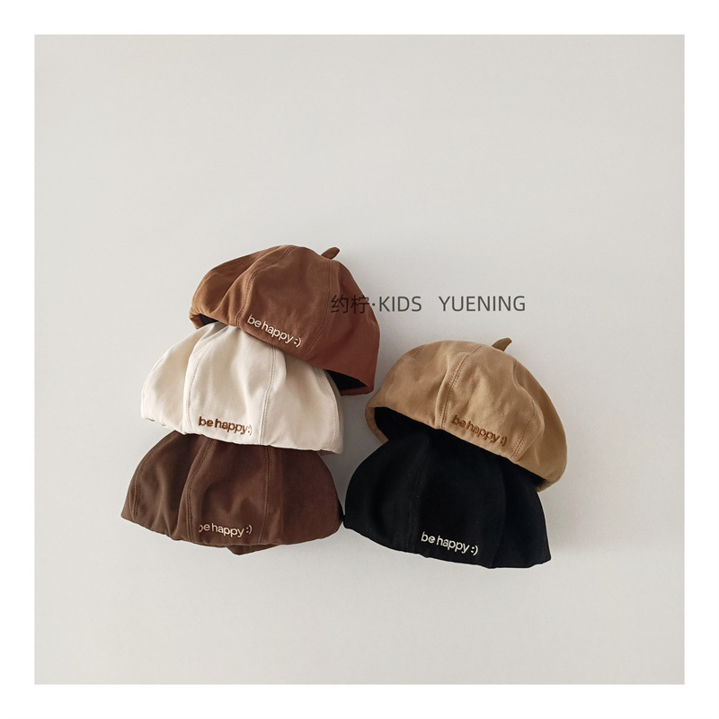 영국 빈티지 어린이 베레모 가을 새로운 패션 편지 수 놓은 아기 세련된 호박 모자 패션 모자