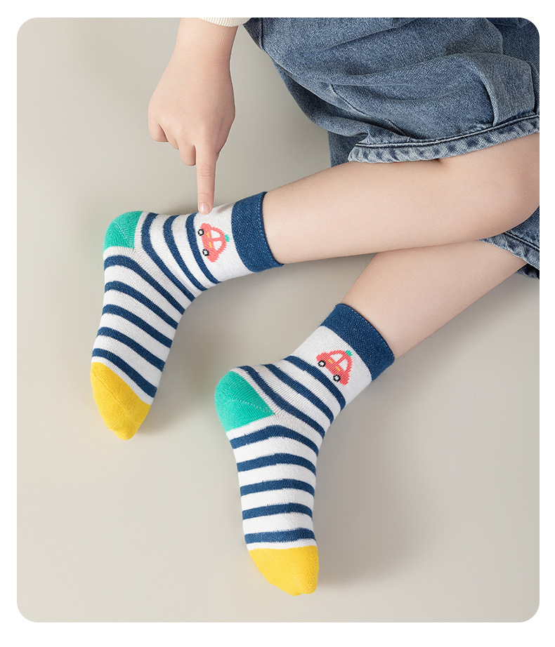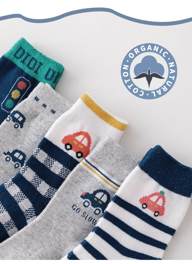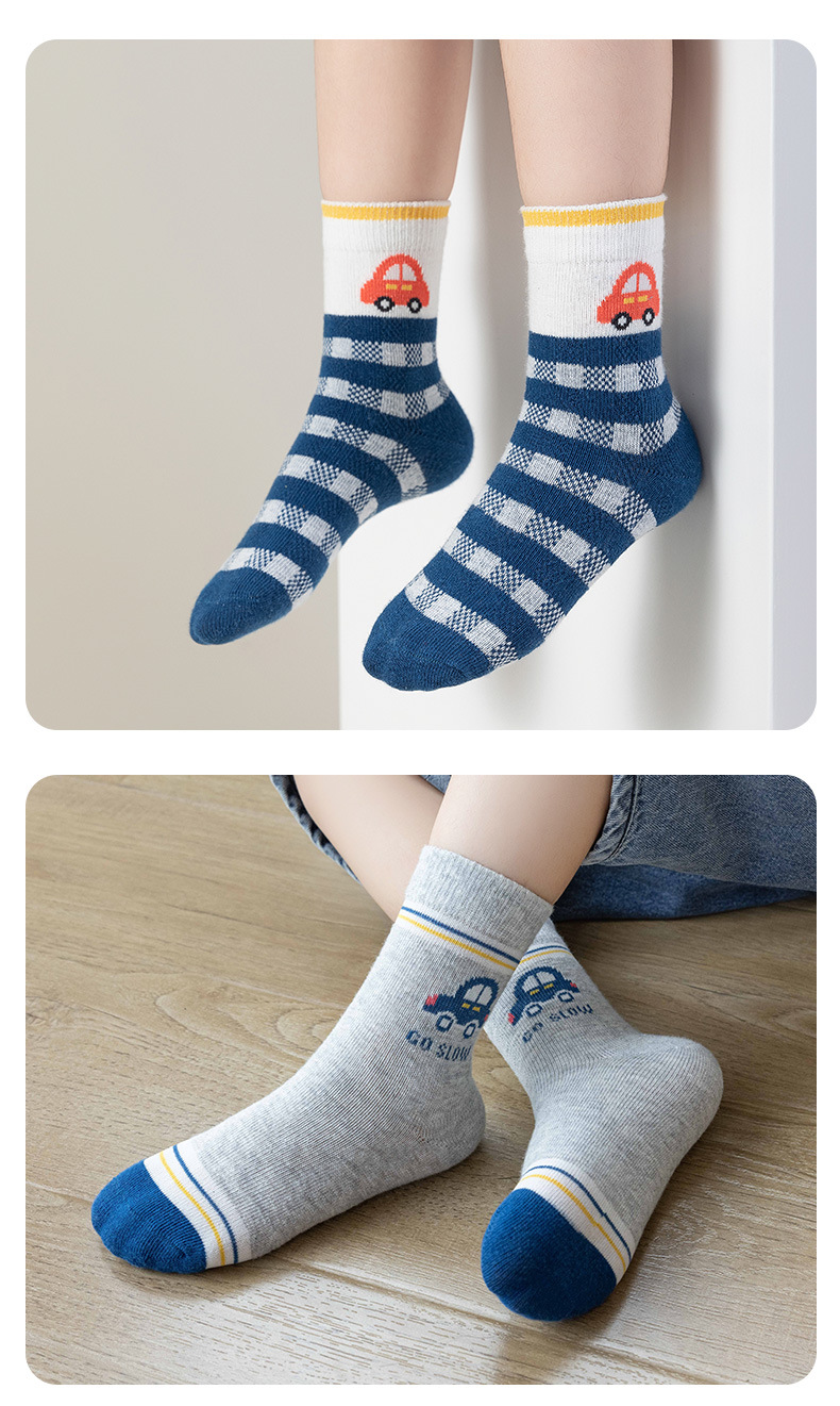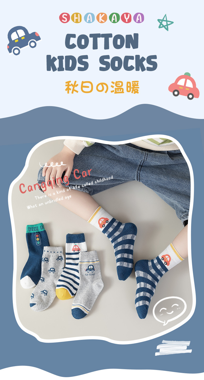 어린이 양말 2024 가을 겨울 신상품 네이비 블루 자동차 중간 길이 양말 만화 스포츠 통기성 남아용 면 양말 어린이 양말