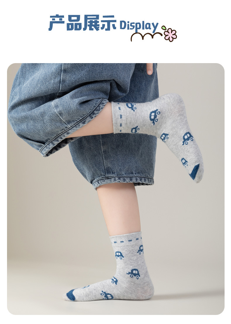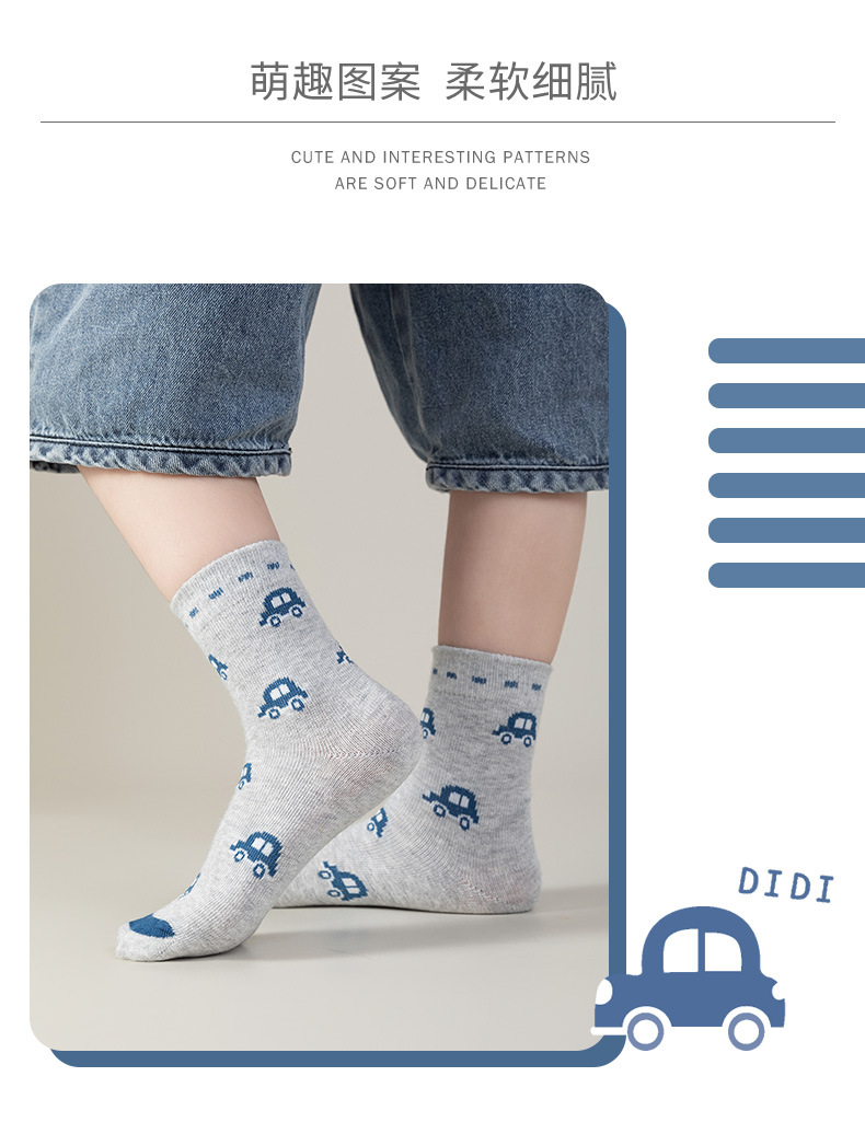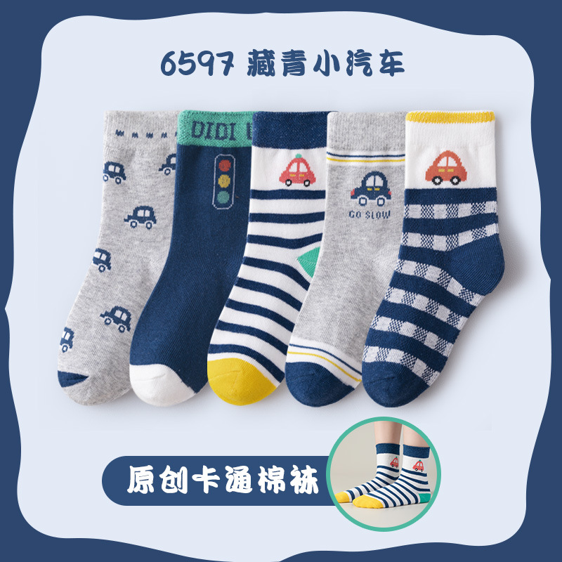 어린이 양말 2024 가을 겨울 신상품 네이비 블루 자동차 중간 길이 양말 만화 스포츠 통기성 남아용 면 양말 어린이 양말스토어 가기