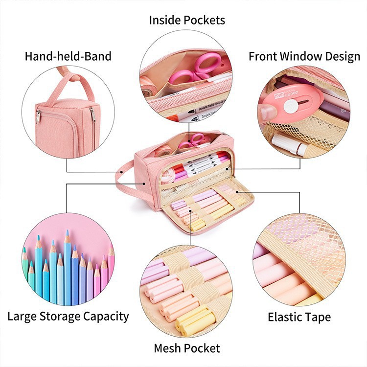 韩版大容量笔袋跨境简约牛津布文具笔袋高颜值日系手提学生铅笔袋Stationery bag Large capacity Pencil case