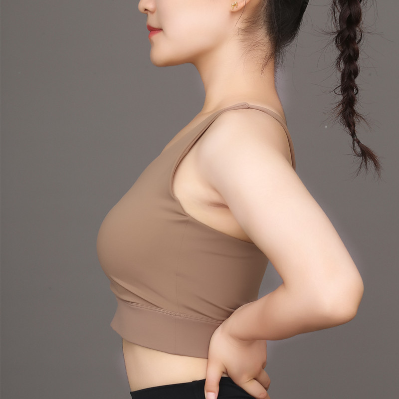 요가 스포츠 조끼 가슴 패드를 덮는 통합 고정 컵 Paramilia 슬링 브라 피트니스 스포츠 수분 흡수 및 땀