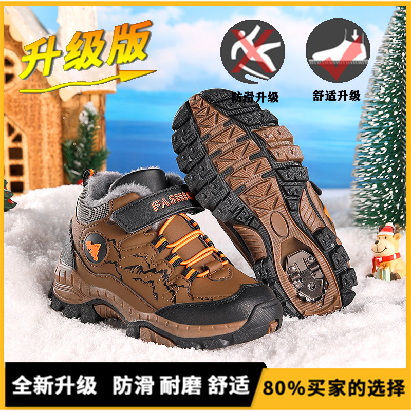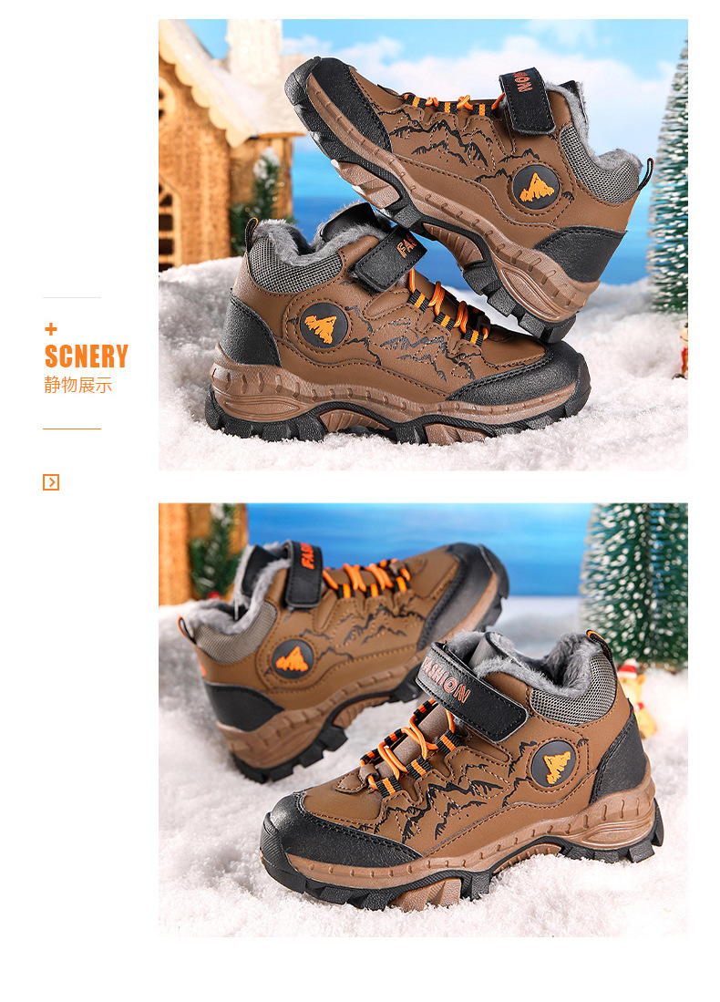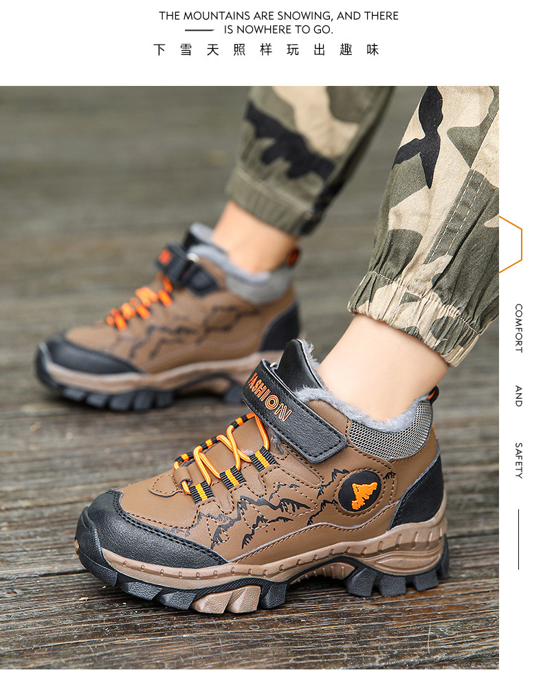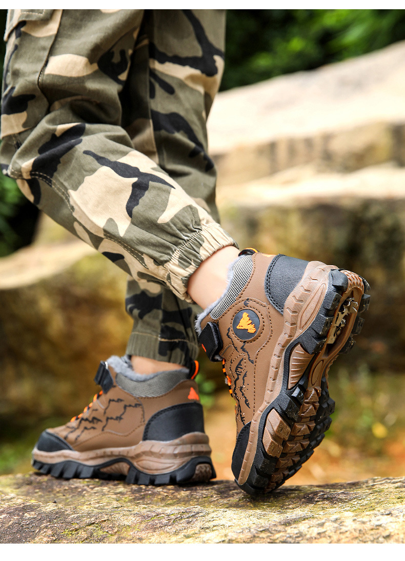 작은 노란 오리 어린이 하이킹 신발 봄 새로운 야외 미끄럼 방지 내마모성 가죽 방수 하이킹 신발 소년 운동화스토어 가기