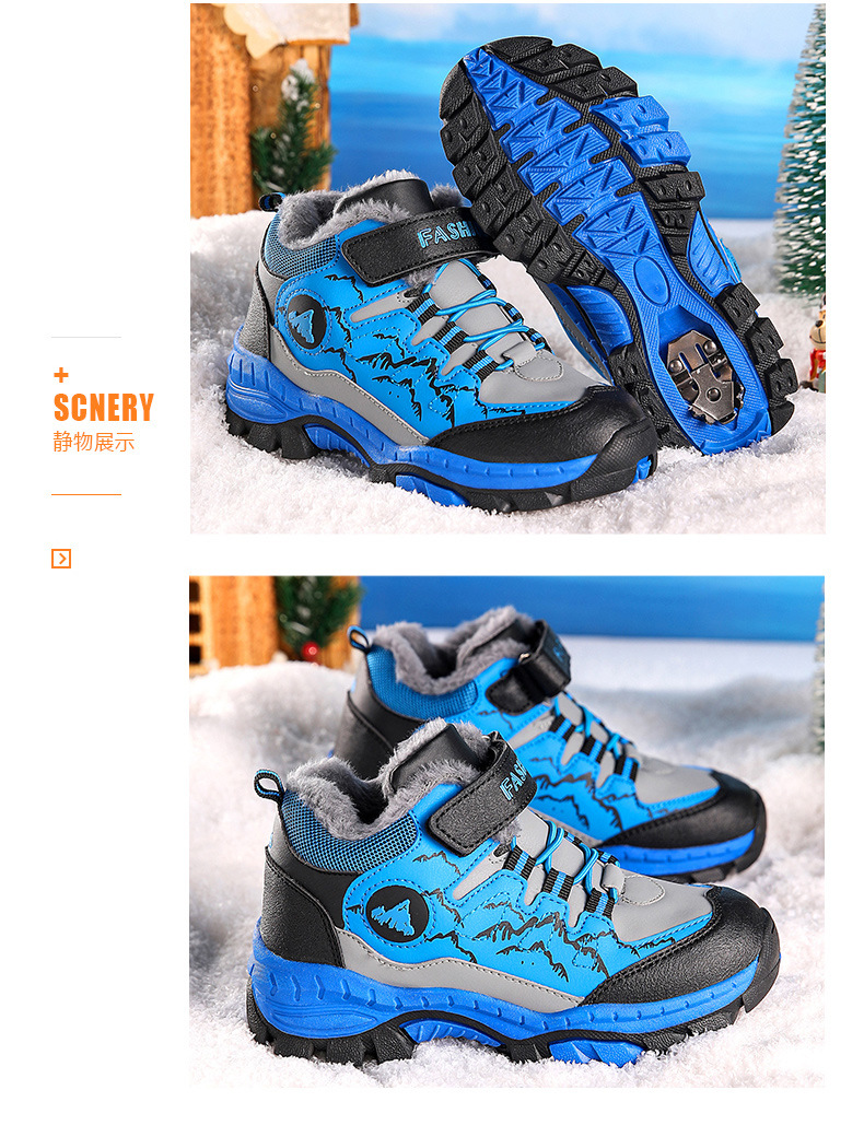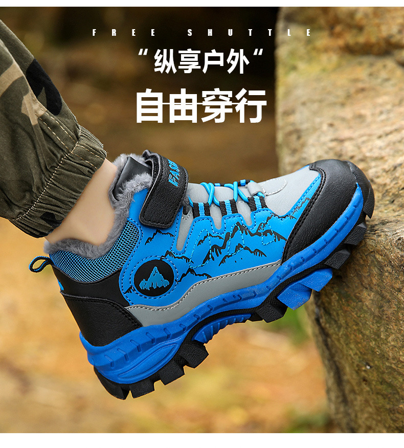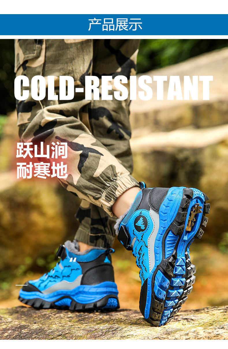 작은 노란 오리 어린이 하이킹 신발 봄 새로운 야외 미끄럼 방지 내마모성 가죽 방수 하이킹 신발 소년 운동화
