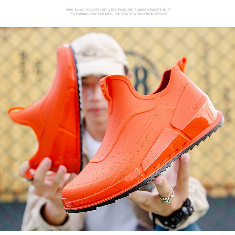 크로스 보더 패션 레인 부츠 남성용 짧은 튜브 슈퍼 쿨 패션 레인 부츠 면 따뜻한 방수 신발 야외 세차 미끄럼 방지 고무 신발