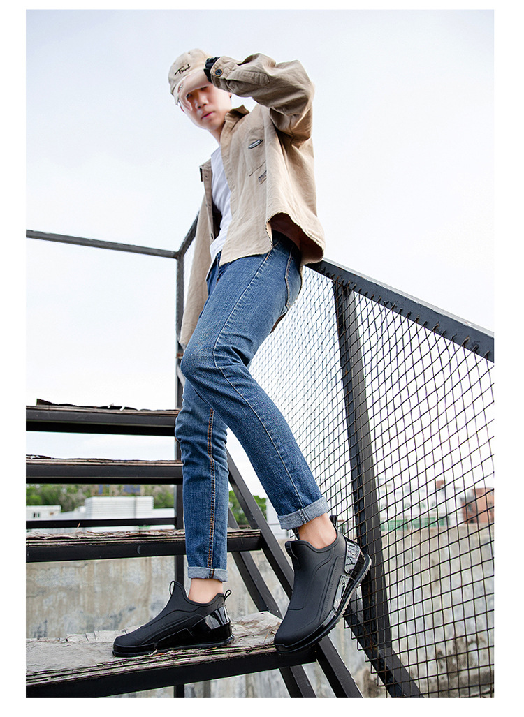 크로스 보더 패션 레인 부츠 남성용 짧은 튜브 슈퍼 쿨 패션 레인 부츠 면 따뜻한 방수 신발 야외 세차 미끄럼 방지 고무 신발스토어 가기