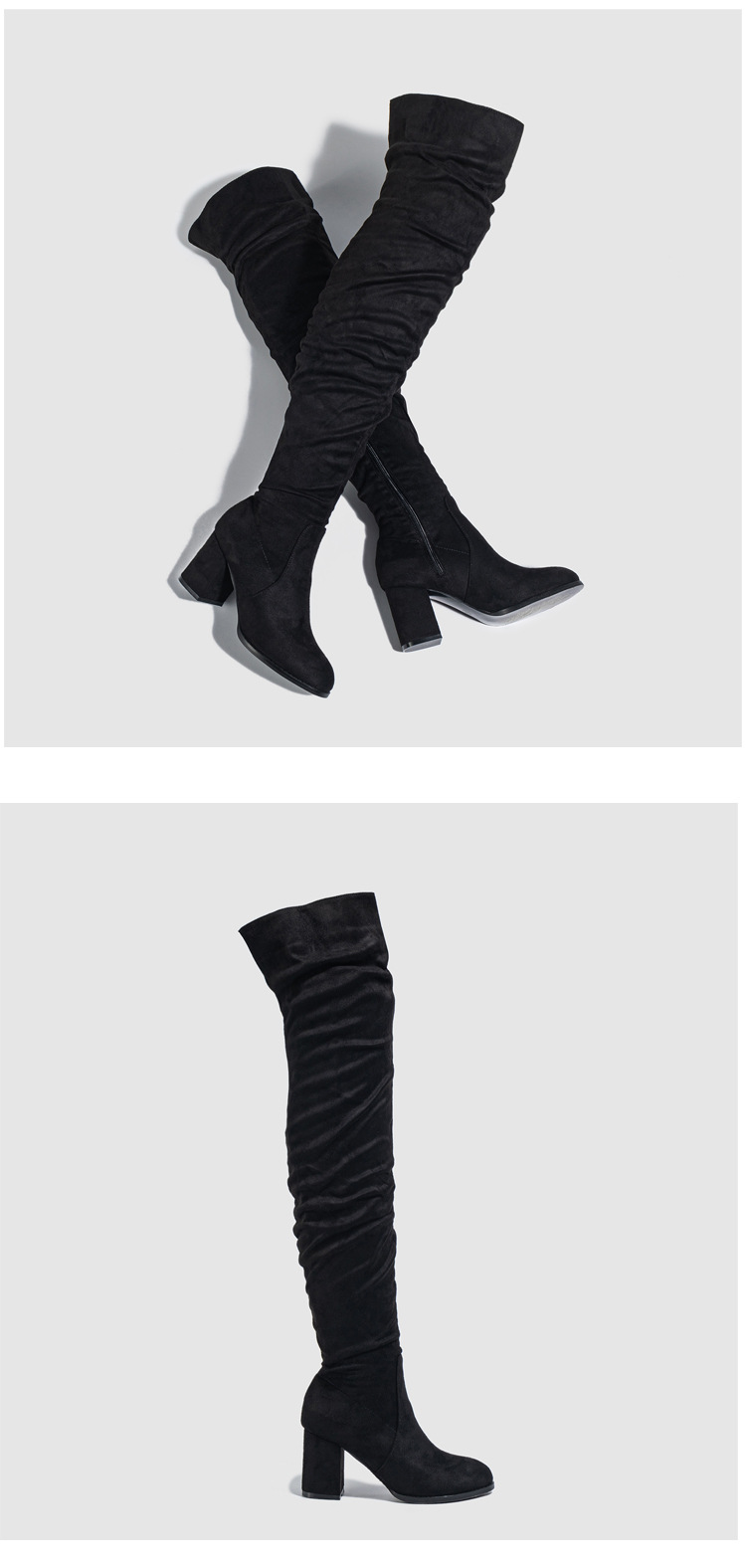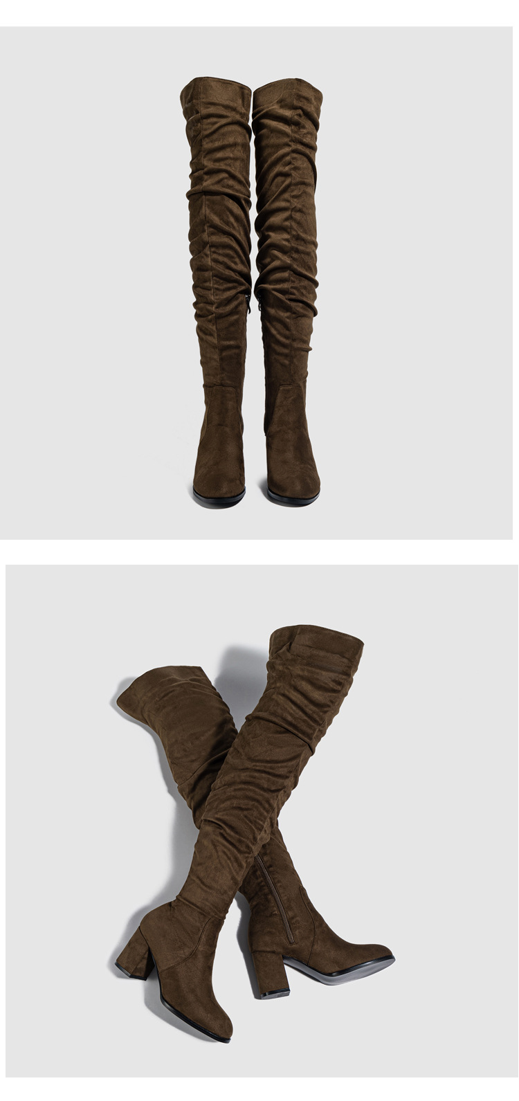 부츠 여성용 롱 부츠 높은 굽 2024 대외 무역 새로운 스웨이드 여성 프로스트 T-스테이지 두꺼운 굽 스트레치 오버 더-무릎 부츠스토어 가기