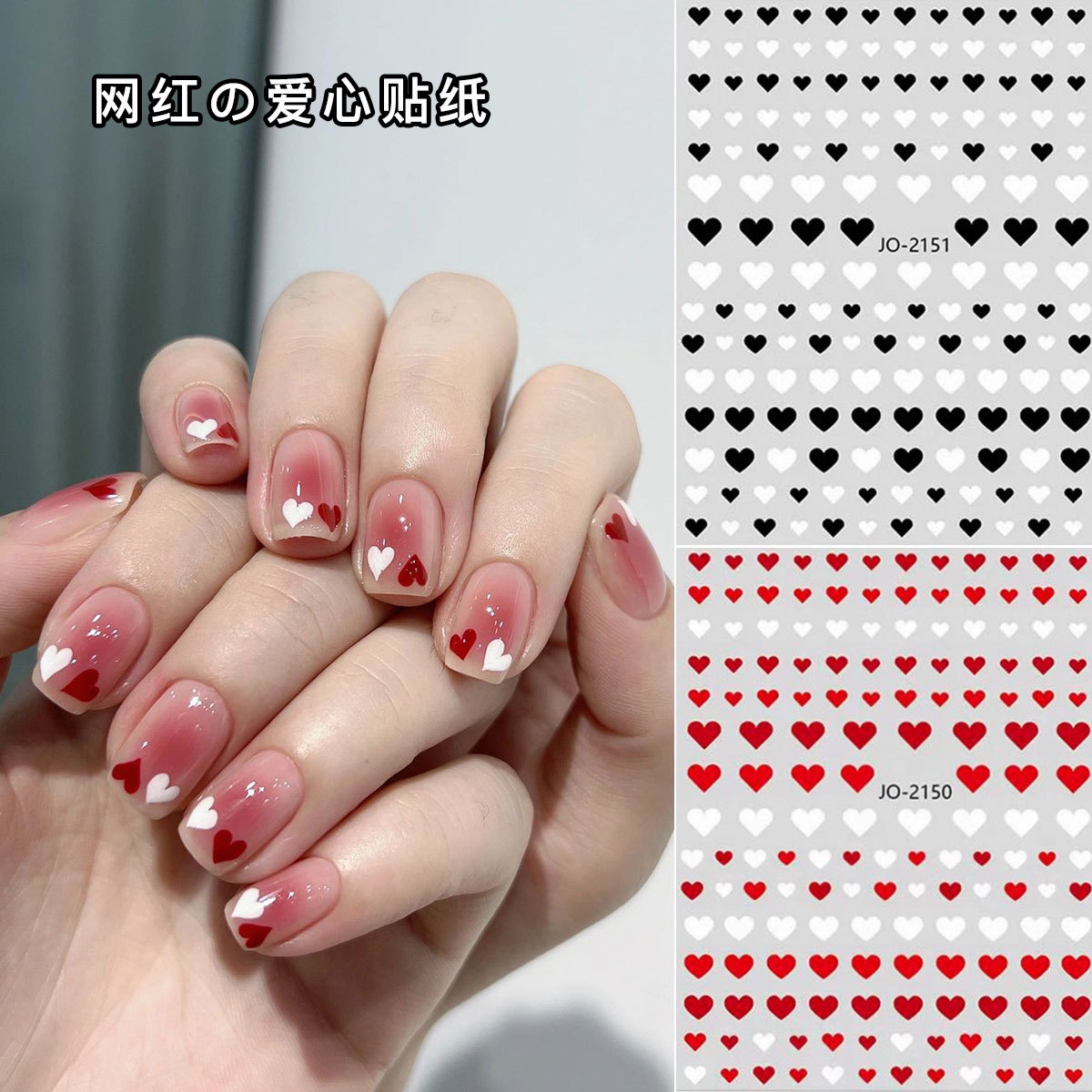 그물 빨강 폭발 네일 아트 사랑 스티커 크기 흑백 빨강 심장 노랑 녹색 심장 접착제 네일 데칼 도매스토어 가기