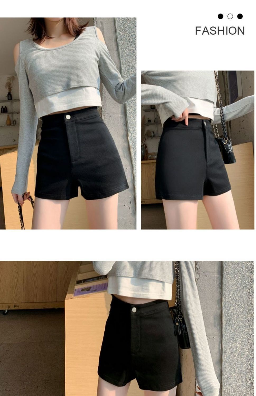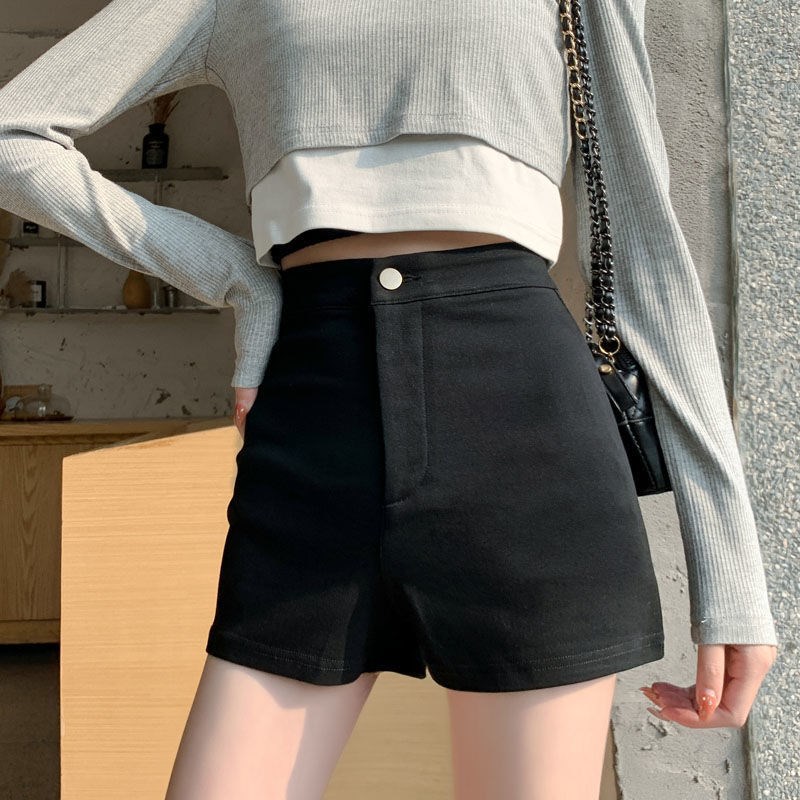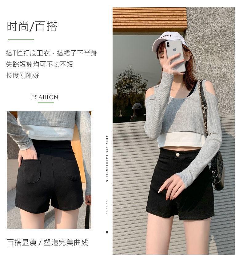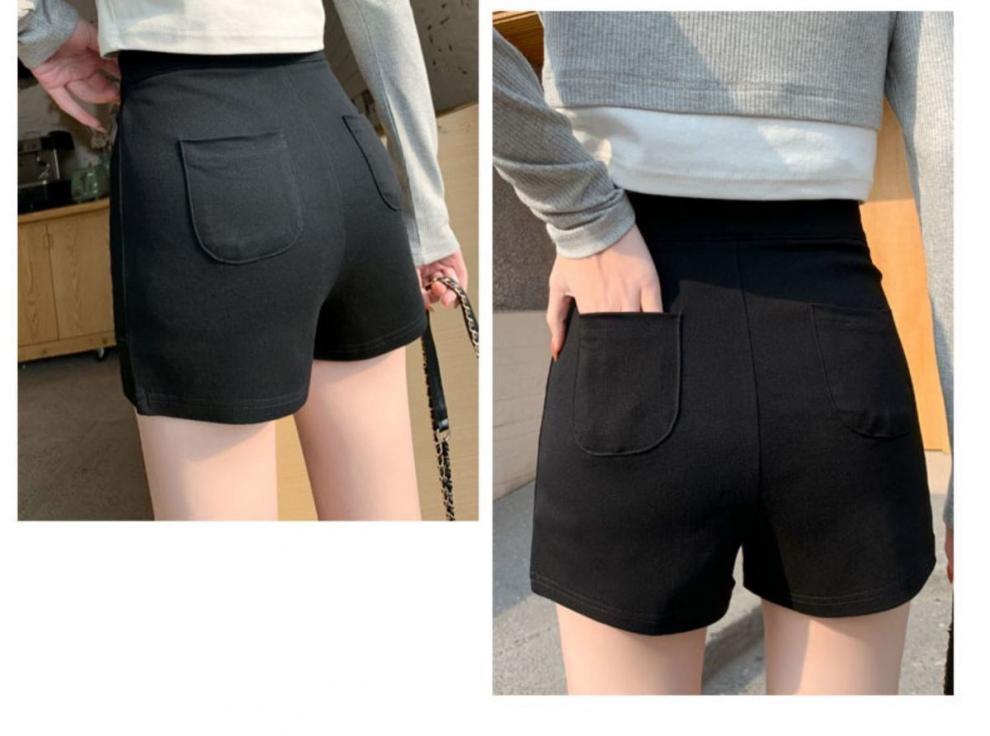 블랙 하의 작은 반바지 여성용 여름 겉옷 얇은 하이 웨이스트 탄성 안티 러닝 라이트 컬링 꽉 안전 바지스토어 가기
