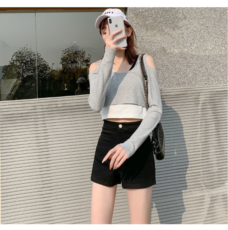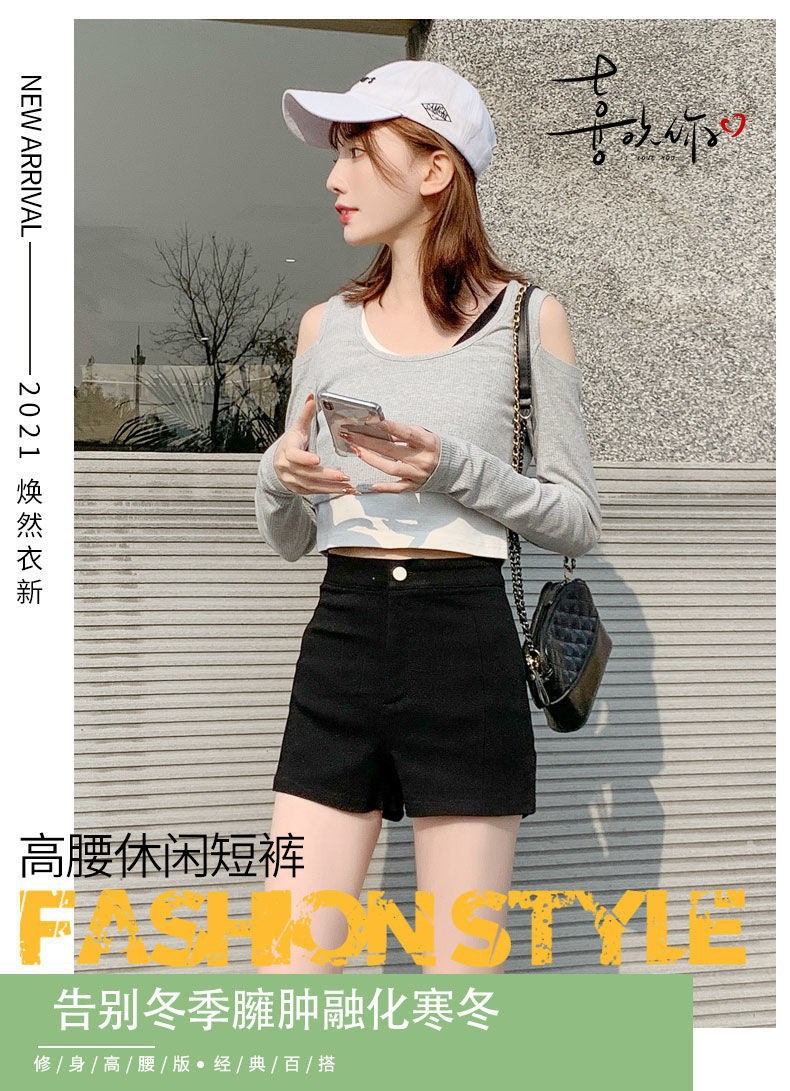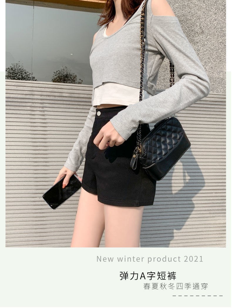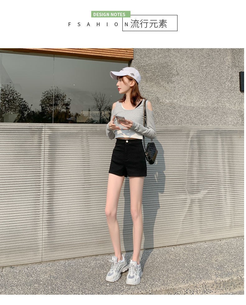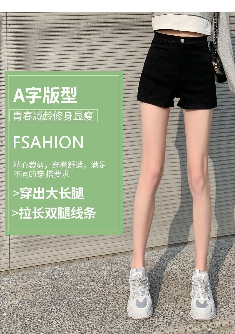 블랙 하의 작은 반바지 여성용 여름 겉옷 얇은 하이 웨이스트 탄성 안티 러닝 라이트 컬링 꽉 안전 바지스토어 가기
