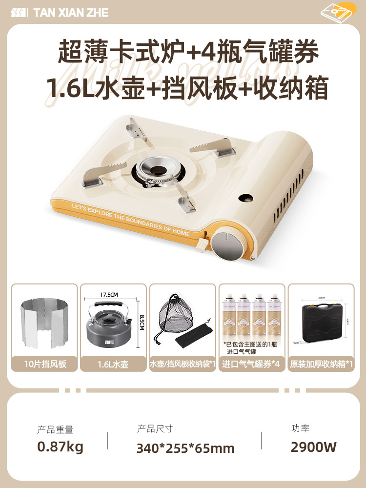 • [차 요리 패키지] 스토브 + 1.6L 주전자 + 앞 유리 + 보관함 + 가스 탱크 4 병