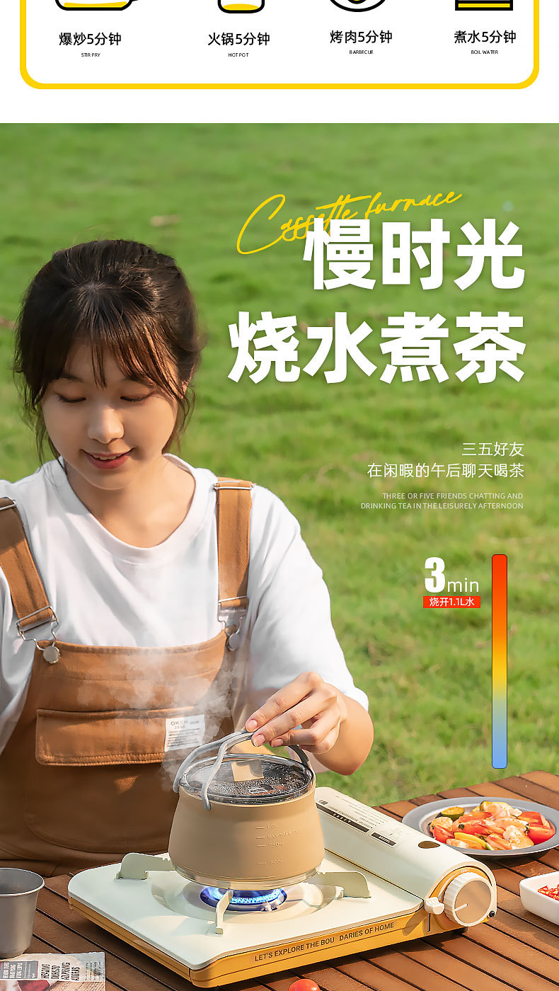 • [화력 3300kw 증가] + 가스 탱크 4 병 + 보관함 (1.1L 물이 3 분 안에 끓음)