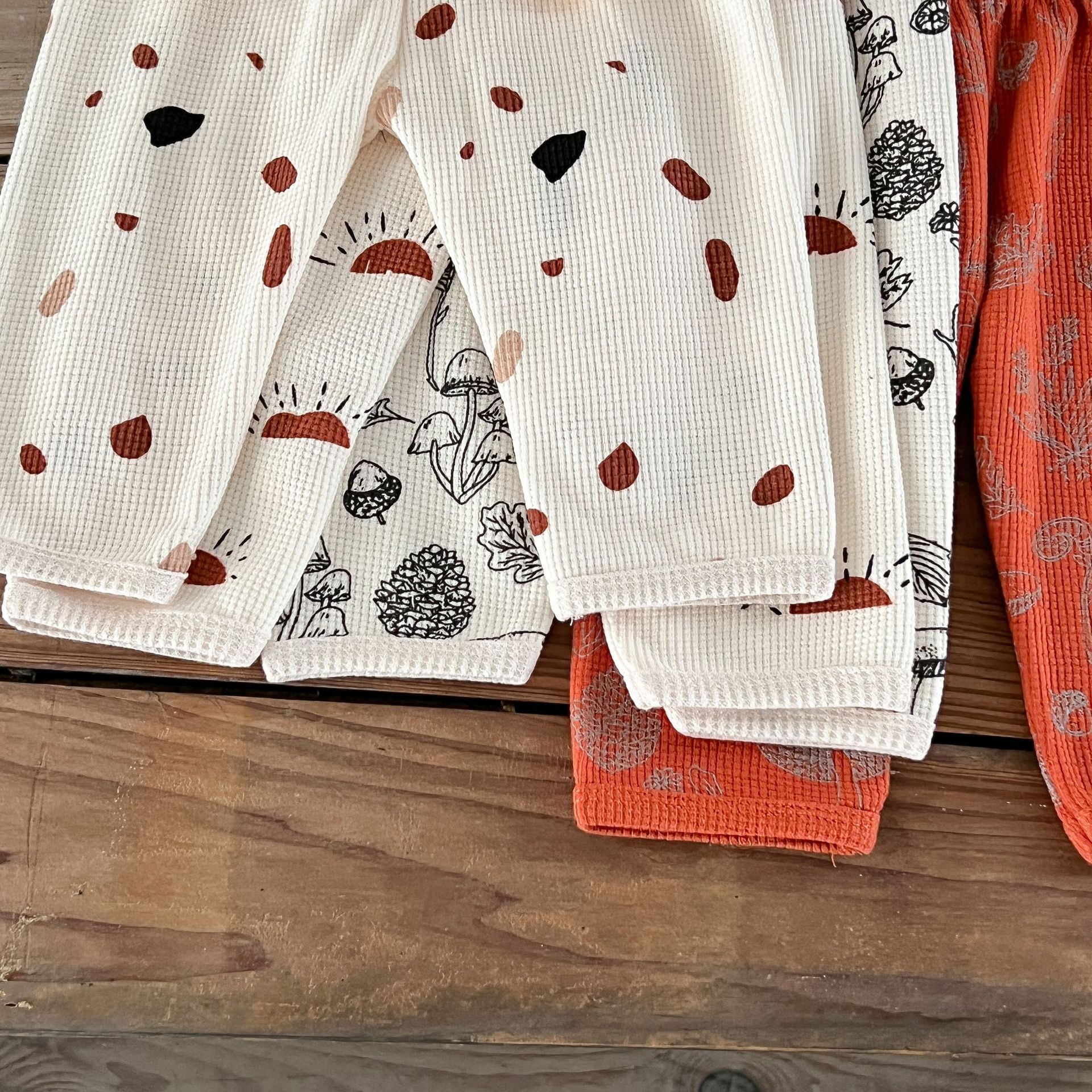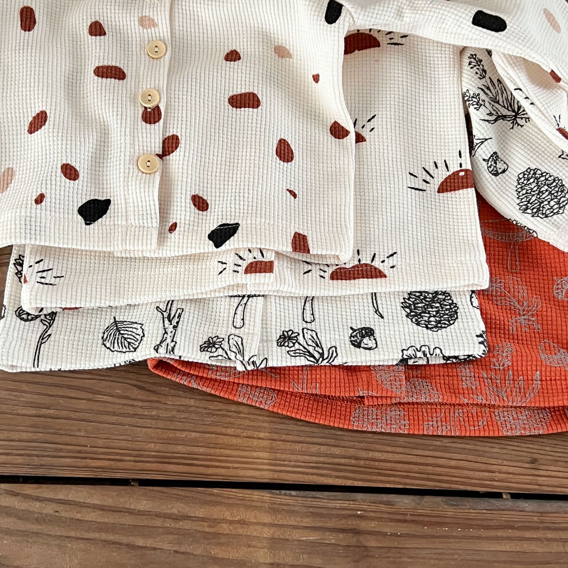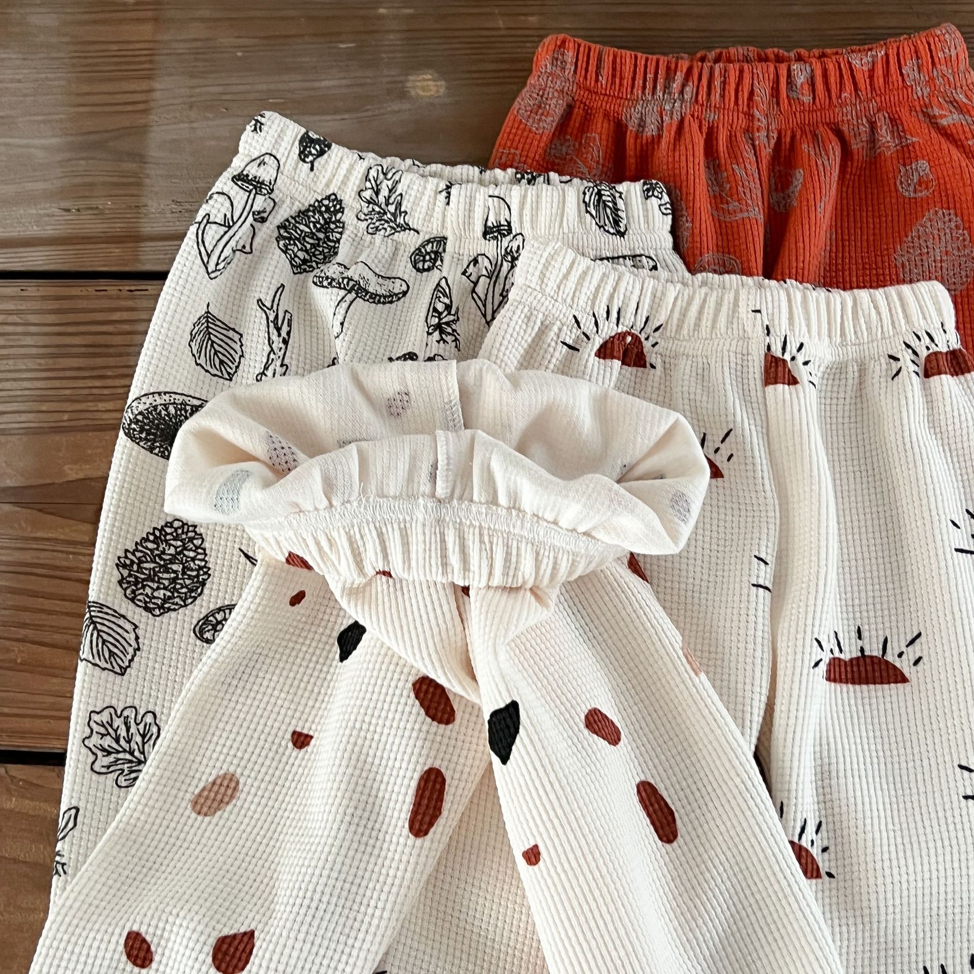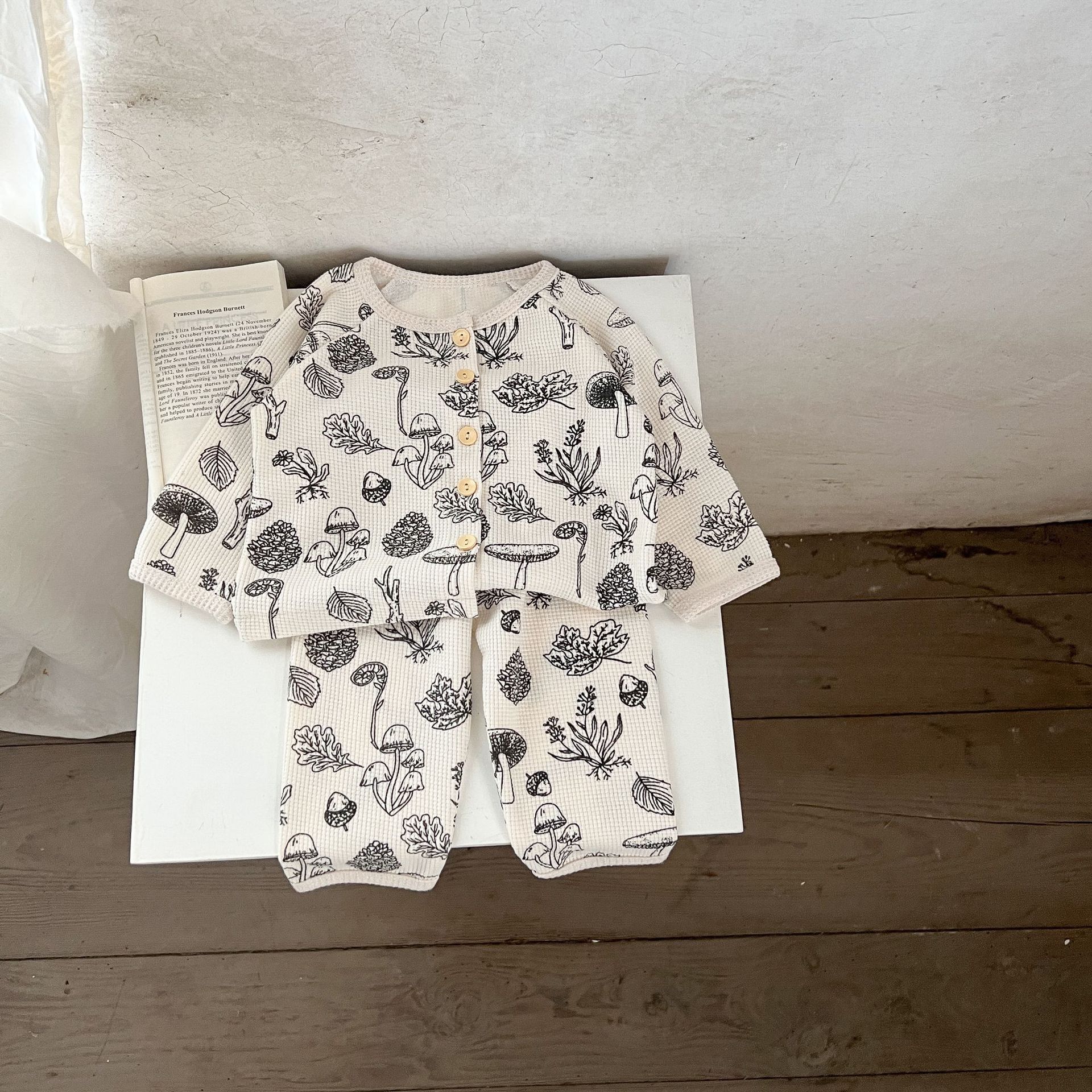 소년과 소녀를위한 한국 스타일 가을 아기 아기 덴마크 스타일 인쇄 가정 옷 세트 아기 면 와플 세트