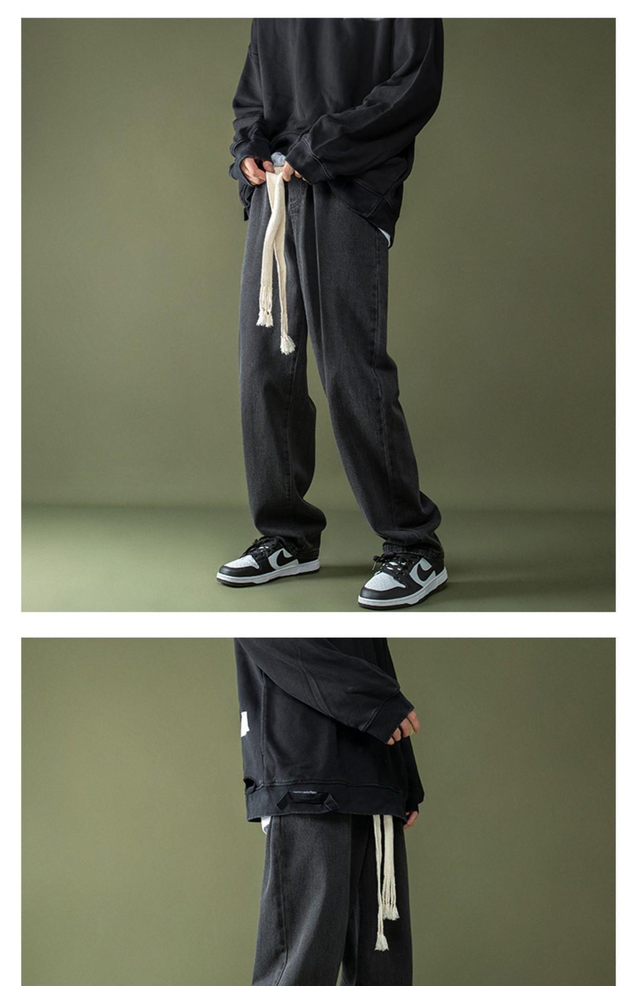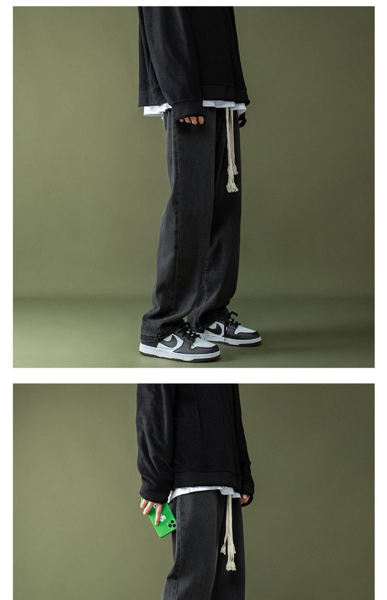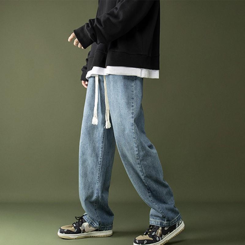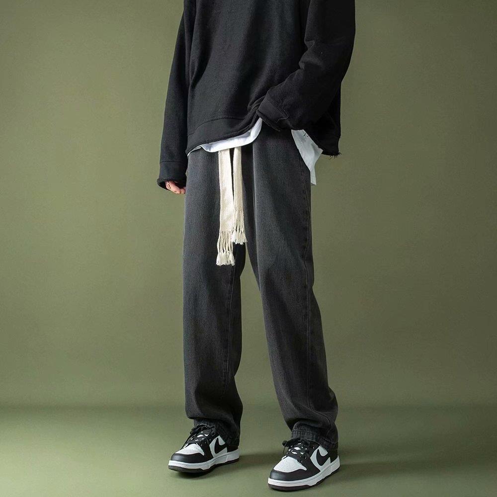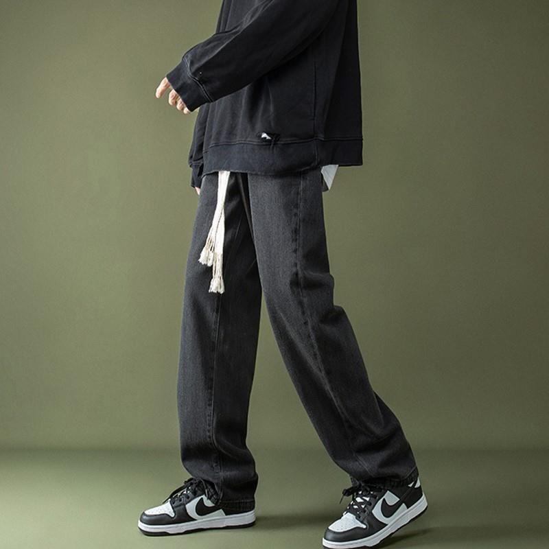 꼰 졸라매는 끈 청바지 가을과 겨울 남자의 느슨한 와이드 다리 바닥 바지 학생 한국 유행 토레 바지