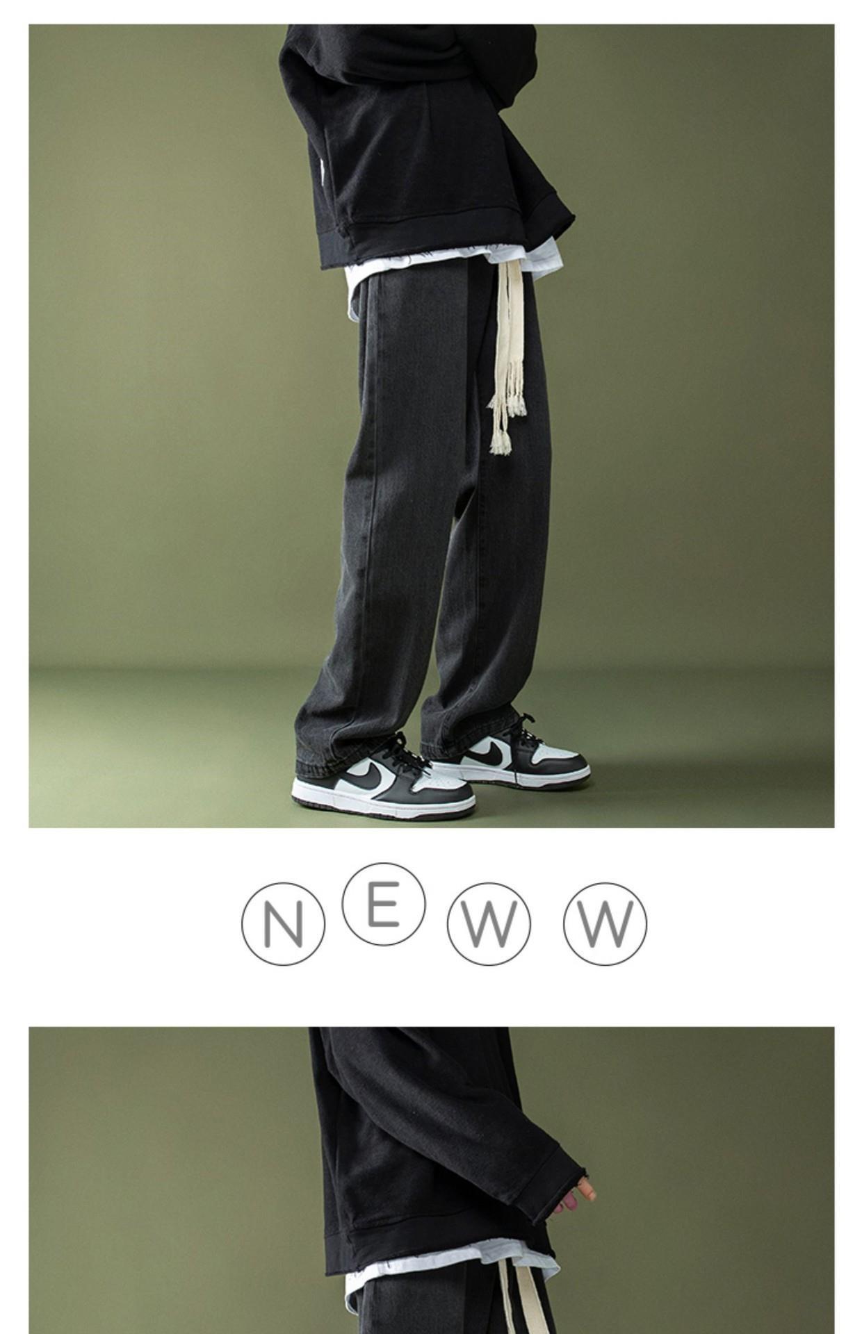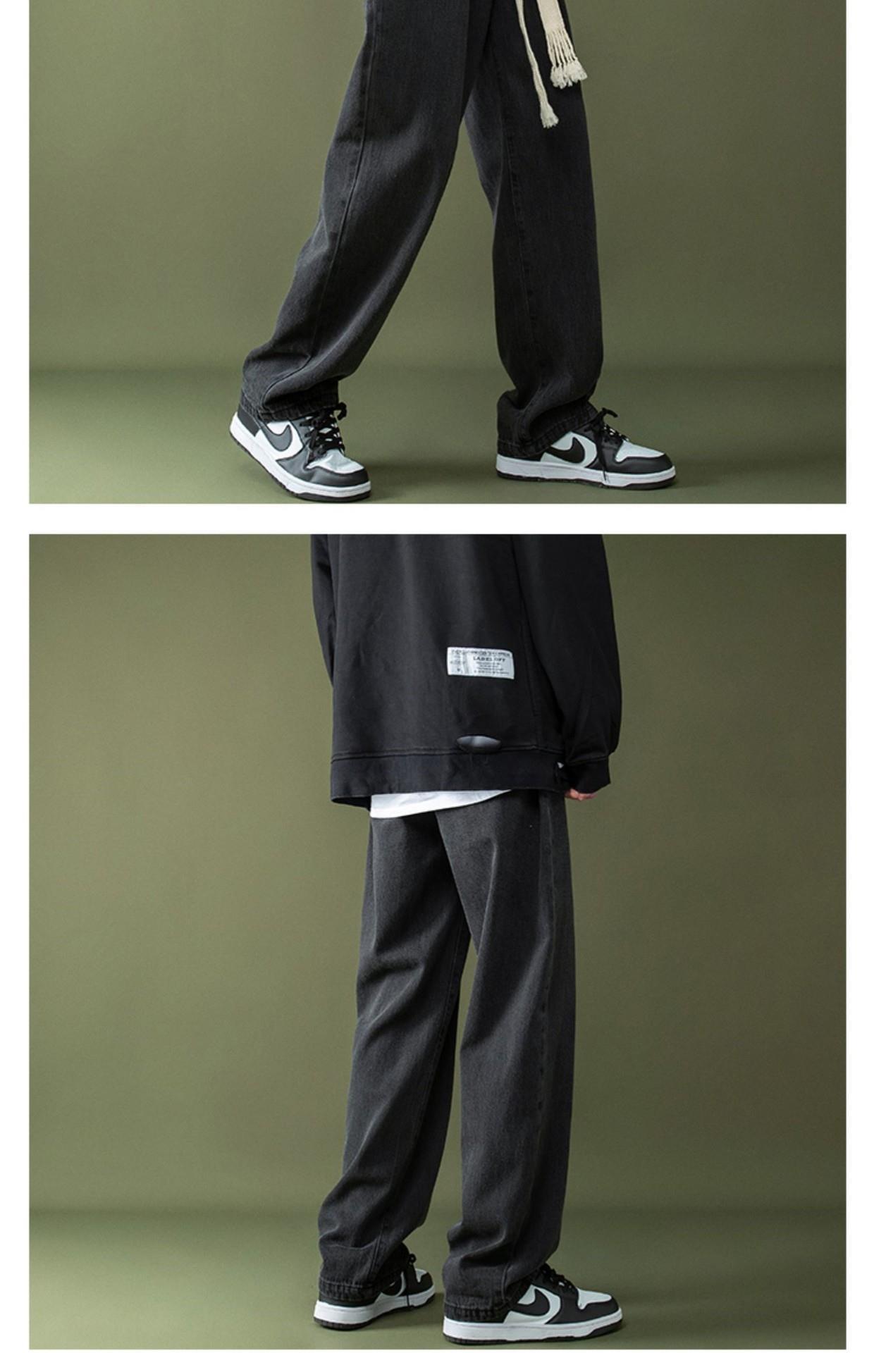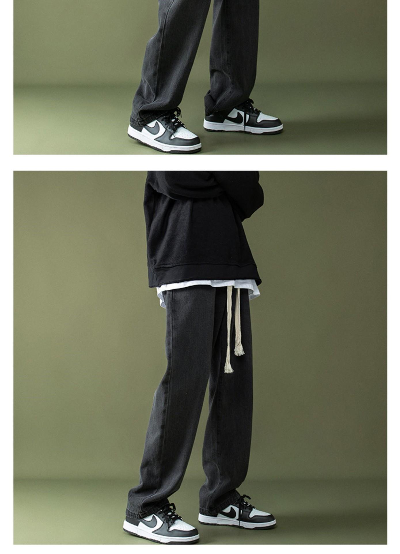 꼰 졸라매는 끈 청바지 가을과 겨울 남자의 느슨한 와이드 다리 바닥 바지 학생 한국 유행 토레 바지