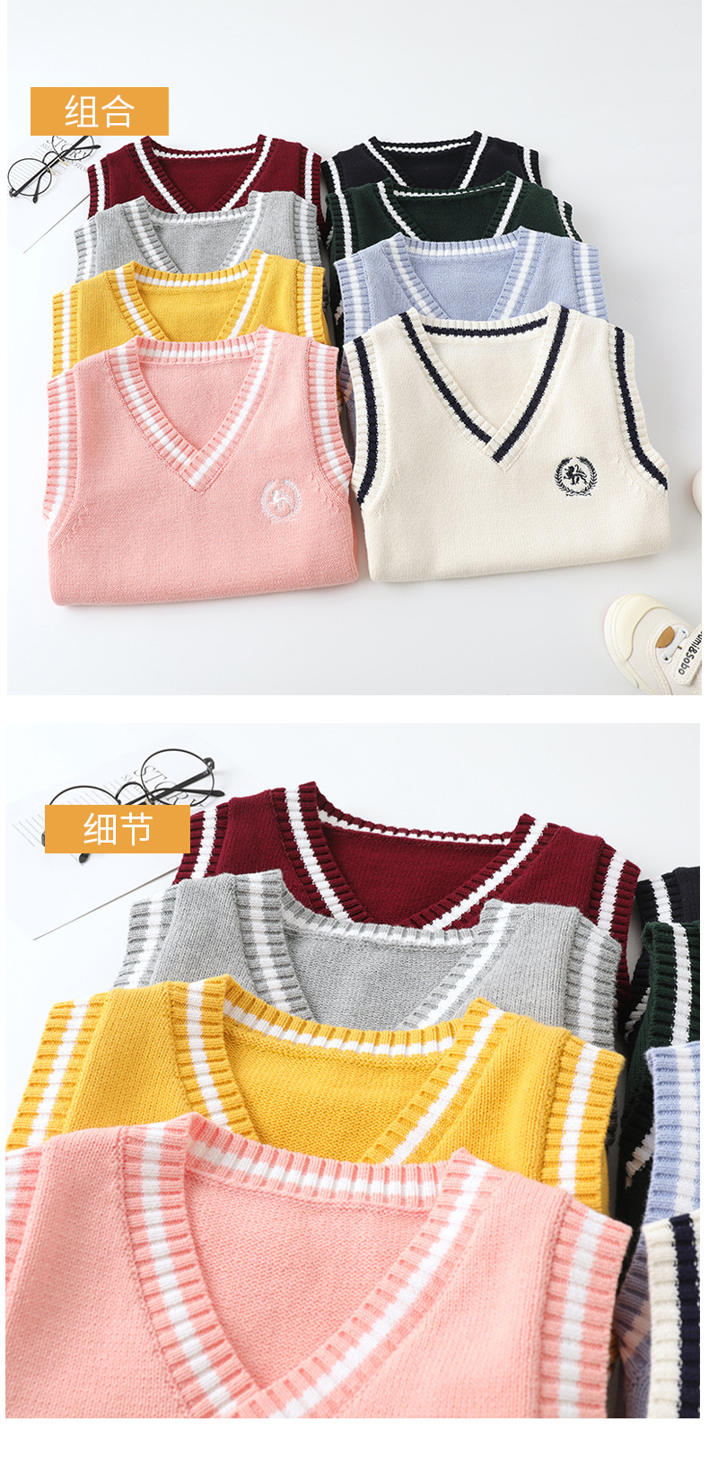 어린이 니트 조끼 봄과 가을 유치원 및 초등학교 교복 소년과 소녀 풀오버 대학 스타일 스웨터 조끼스토어 가기
