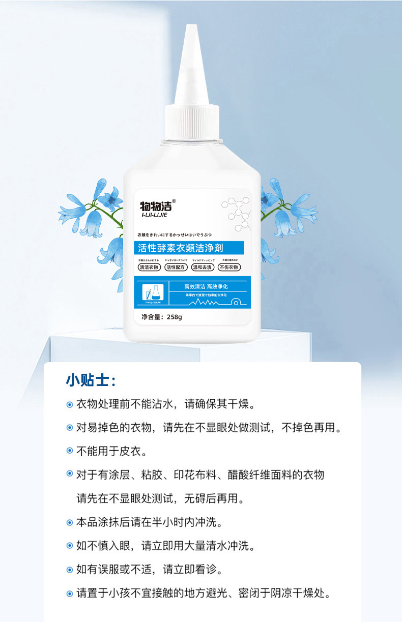 활성 효소 의류 세정제 258g 황색과 기름 얼룩을 제거하는 의류 세제 세탁 프리 드라이 클리닝제 도매스토어 가기
