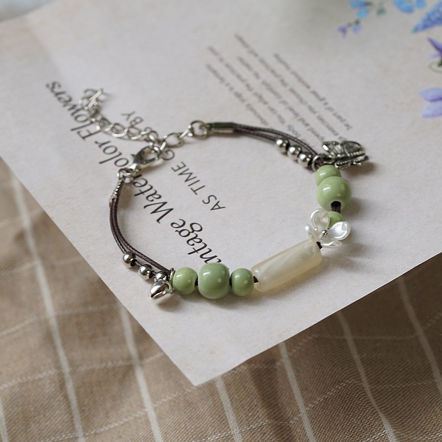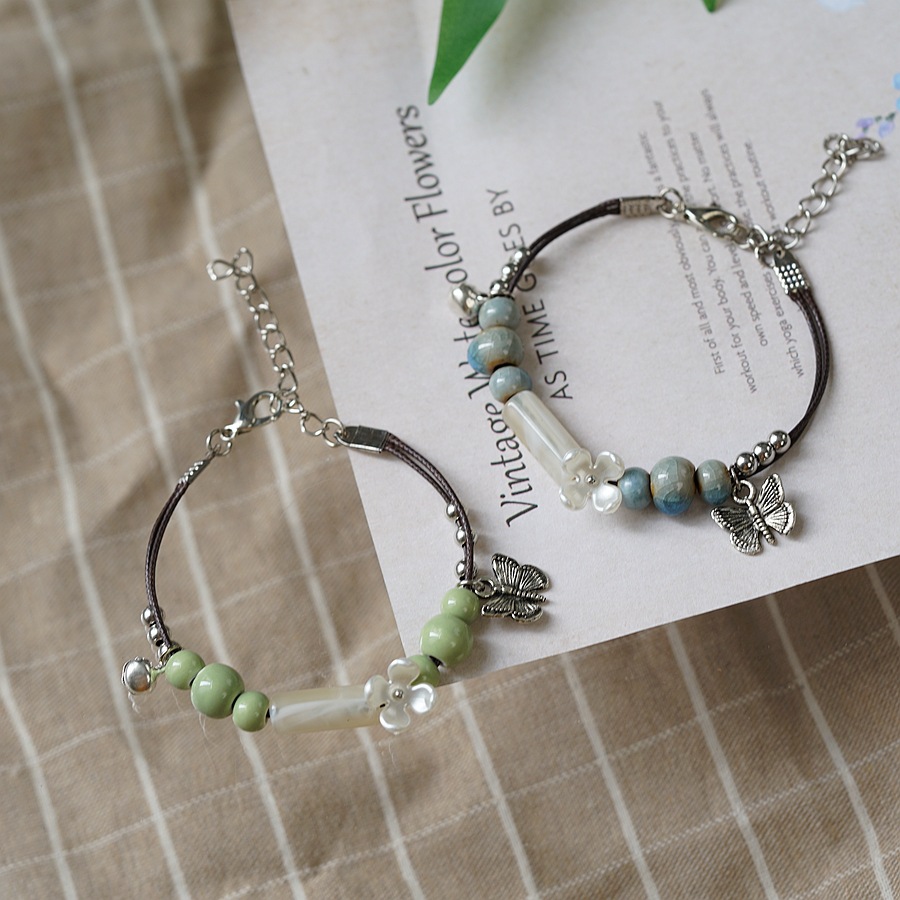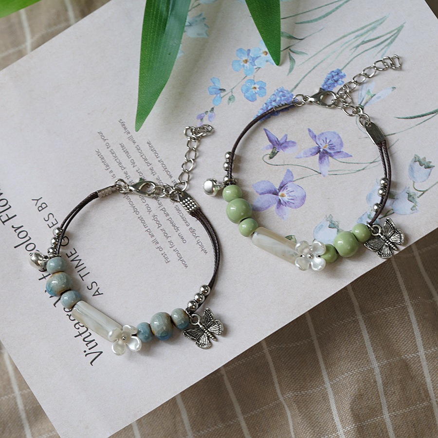 예술적 짠 스즈키 난초 나비 Jingdezhen 세라믹 팔찌 여자의 국가 스타일 새로운 중국 스타일 학생 손 밧줄 선물스토어 가기