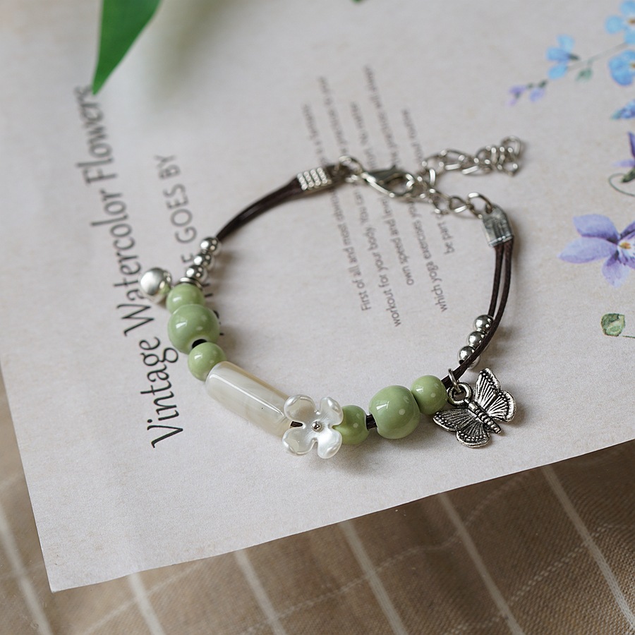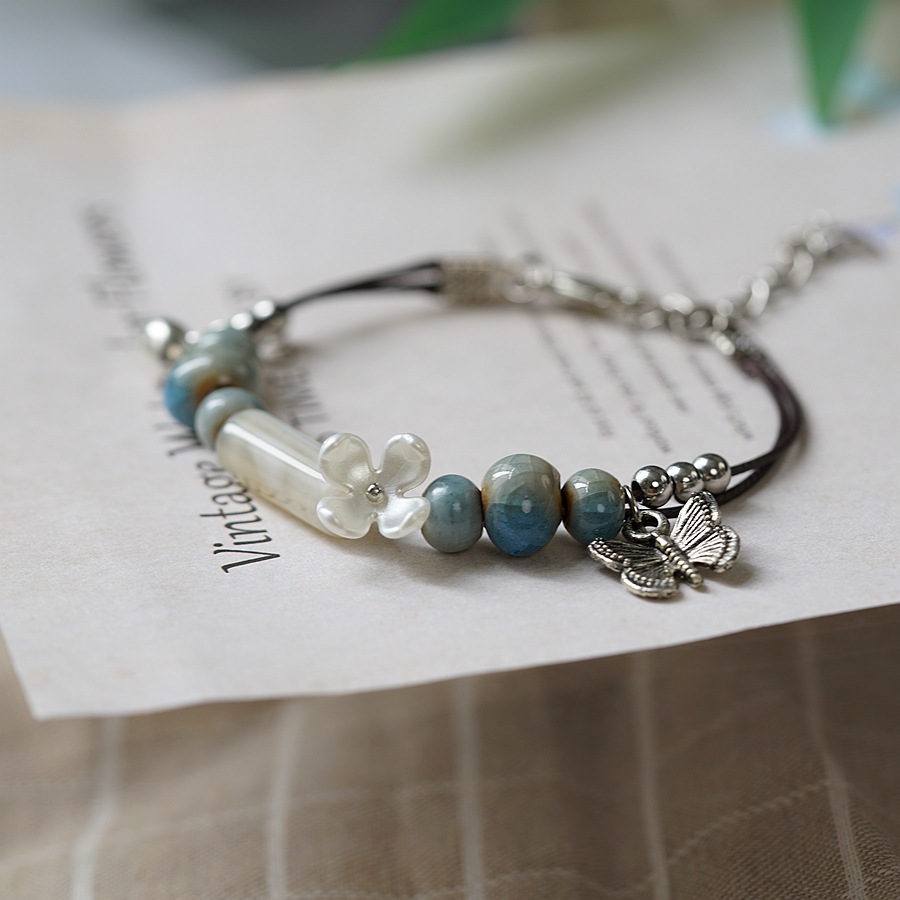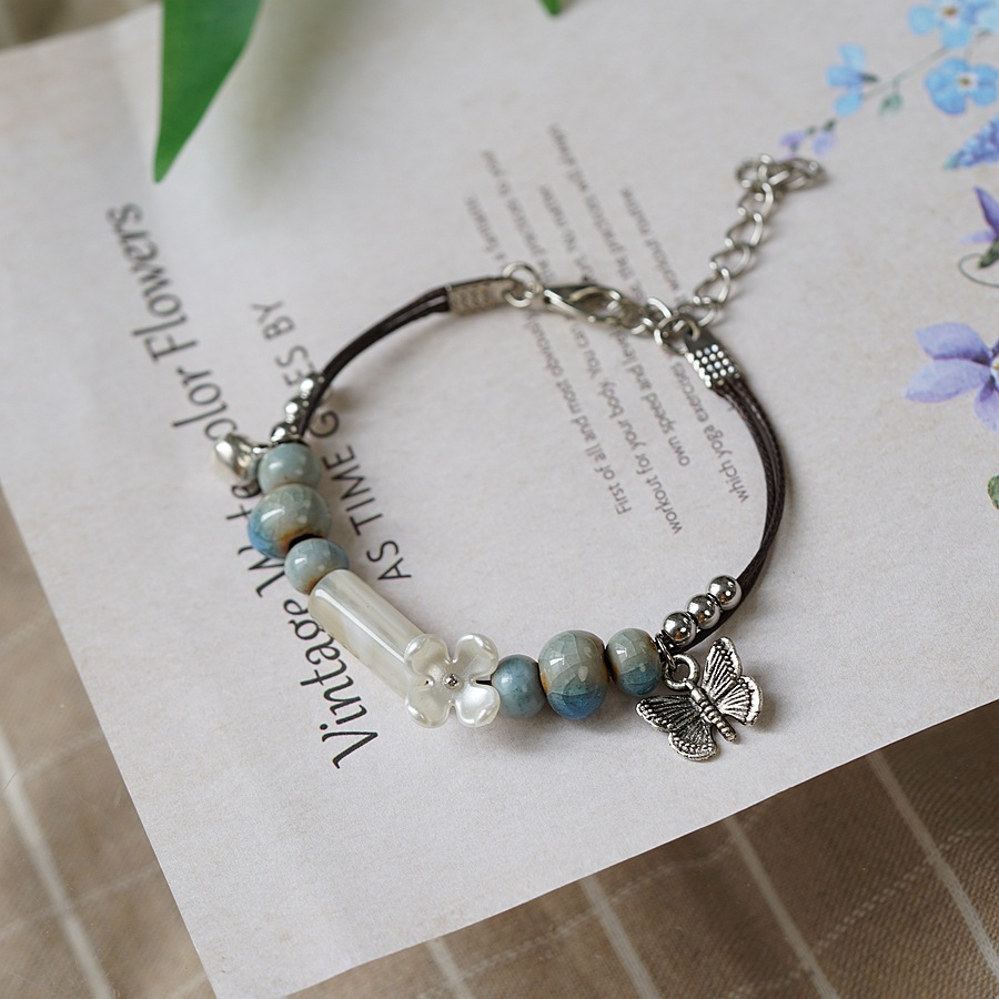 예술적 짠 스즈키 난초 나비 Jingdezhen 세라믹 팔찌 여자의 국가 스타일 새로운 중국 스타일 학생 손 밧줄 선물