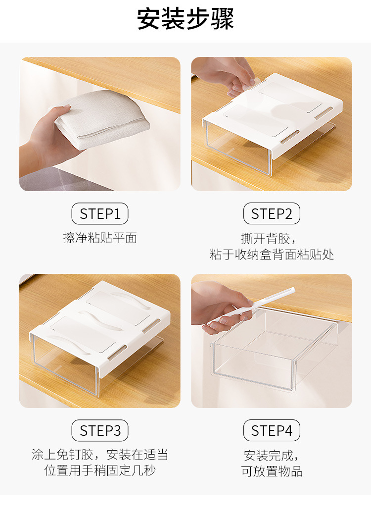 사무실용 조합형 책상 밑 서랍 수납함, 가정용 책상 밑 걸이식 숨김형 수납 서랍