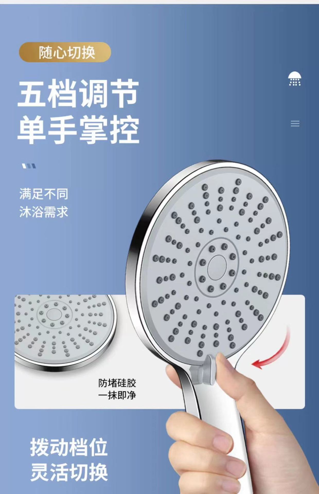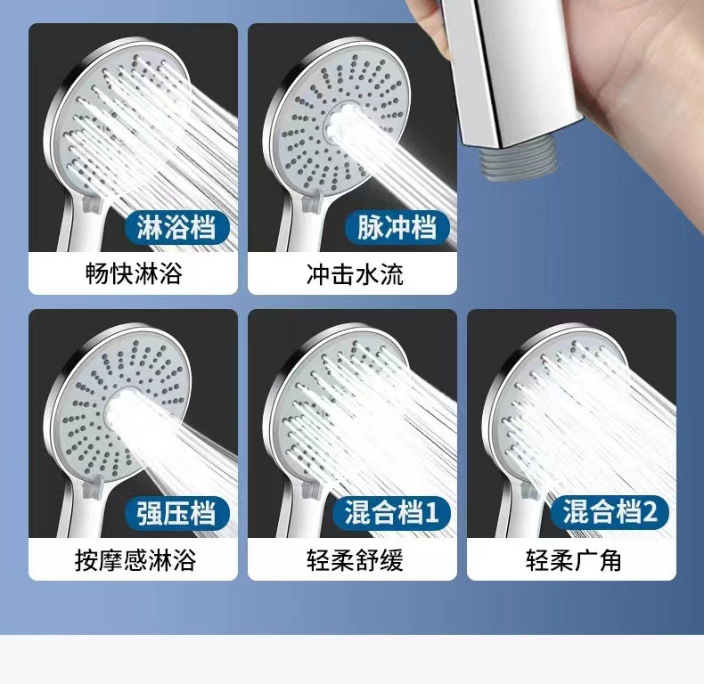 고압 샤워기 핸드헬드 세트 5단계 조절 패널 핸드 스프레이 목욕 샤워기