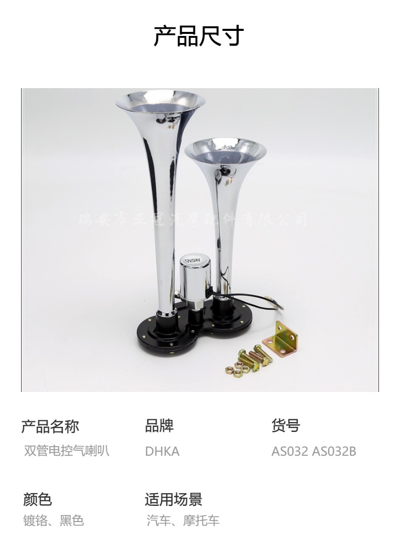 DHKA Yaguan-AS032 재고 이중 튜브 전자 제어 에어 혼 12V 자동차 에어 혼 오토바이 에어 혼스토어 가기